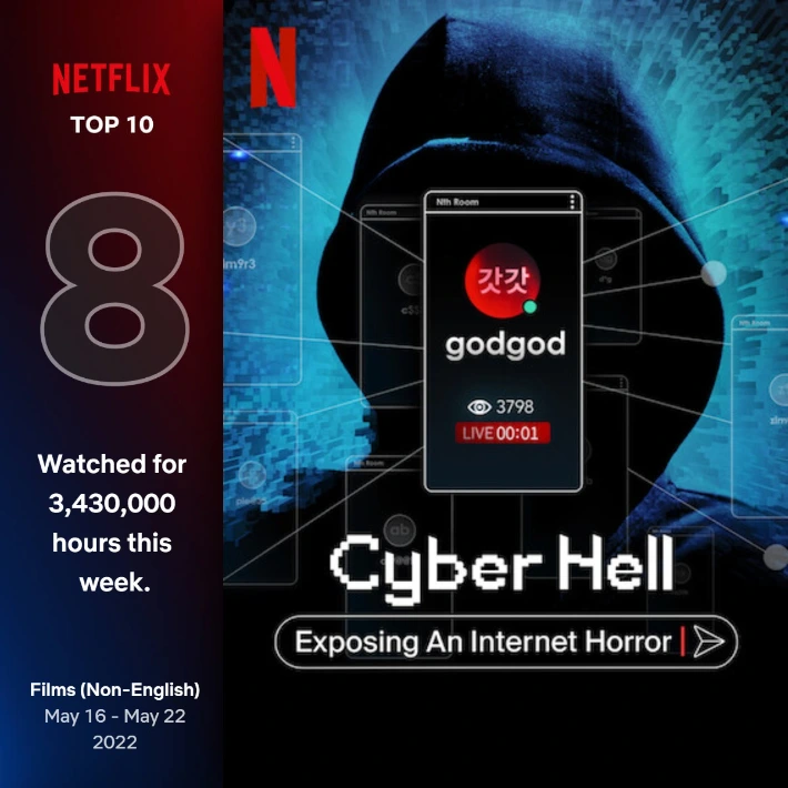 다음엔 무엇을 보고 어떤 글을 쓸지 골몰하던 중, <사이버 지옥>의 리뷰를 읽었다. 사실 그전까지는 이 다큐멘터리의 내용이 너무 얼얼해서 보고 싶지 않았다. 이미 사회는 여성 대상 범죄로 들끓고, 이걸 마주하는 것도 힘든데 다큐멘터리까지 가세하기엔 내가 견디기 어려울 것이라고 판단했다. 그러나 넷플릭스를 뒤지다가 결국 이 다큐멘터리에 이르렀다.