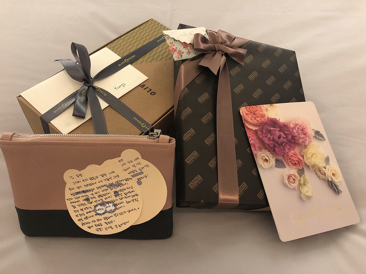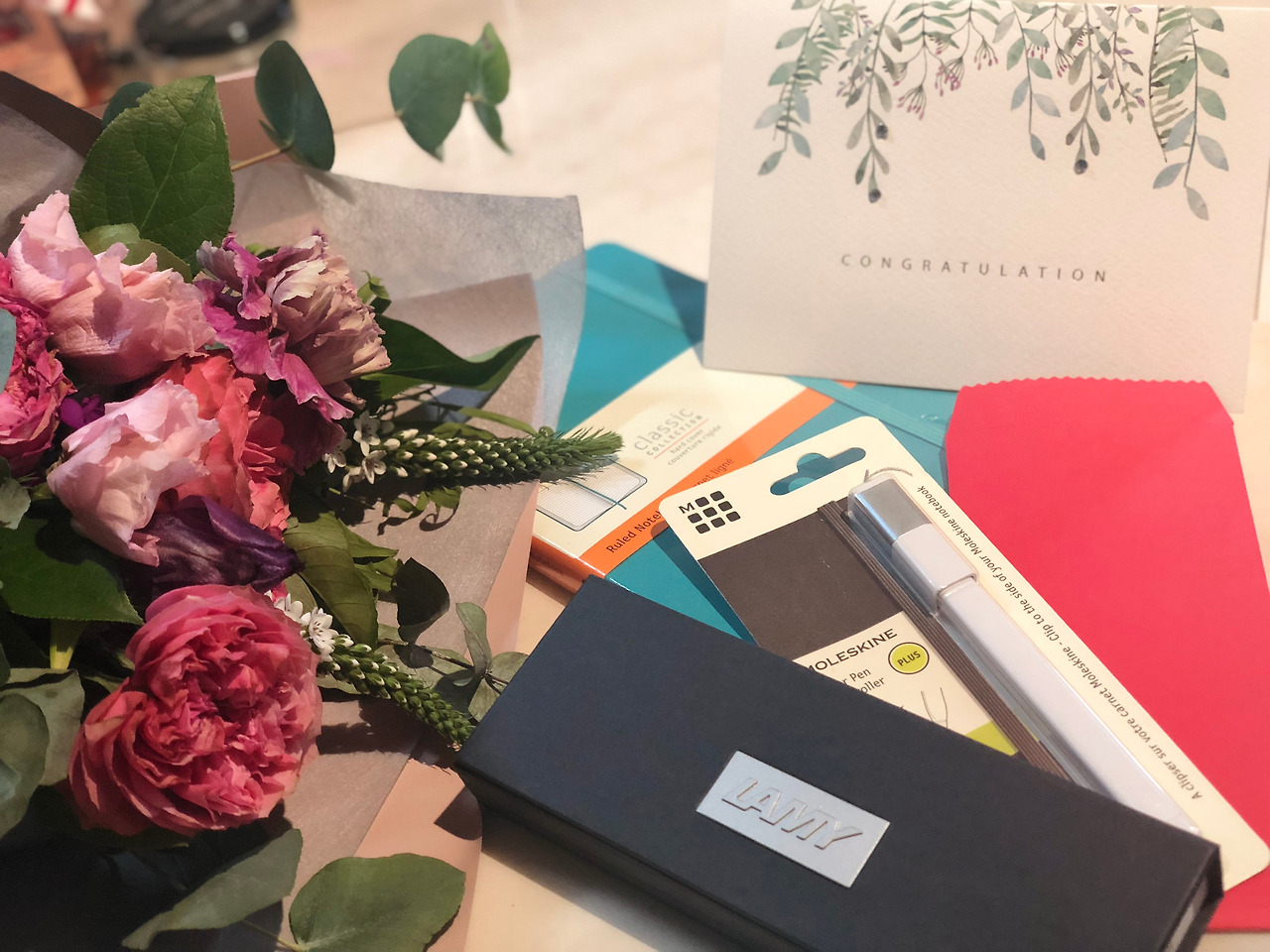 마지막 날에는 생각지도 못한 분들로부터 선물과 편지를 잇달아 받았는 데, 그러고 보니 내가 정말 한국을 떠난다는 것이 조금 실감 나기도 했다. 그중 내가 가장 많이 따랐던 상사는 내 이름이 각인된 펜과 함께 유로화를 넣은 빨간 봉투를 주셨다. "별 거 아니지만 나중에 프랑스에 가서 간식이라도 사 먹어"라고 하시며. 사양 끝에 받을 수밖에 없었지만 대신 이 돈은 너무 아까워서 못 쓸 것 같다고 말씀드렸다. 나와 같은 날 입사한 회사 동기는 학교에서 잡동사니를 넣고 다닐 때 필요할 것 같다며 공방에서 직접 만든 가죽 파우치를, 옆 팀 대리님은 내 이름을 각인한 다이어리를 선물로 주셨다. 그리고 프랑스 가면 추우니까 필요할 거라며 두꺼운 레깅스와 스타킹도 한 뭉치도 받았다.
