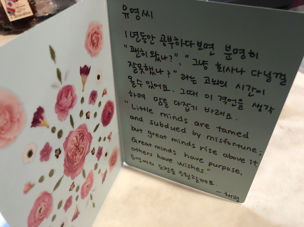 차장님이 꼭 기억하라고 직접 적어주신 격언이 마음에 든다 :)