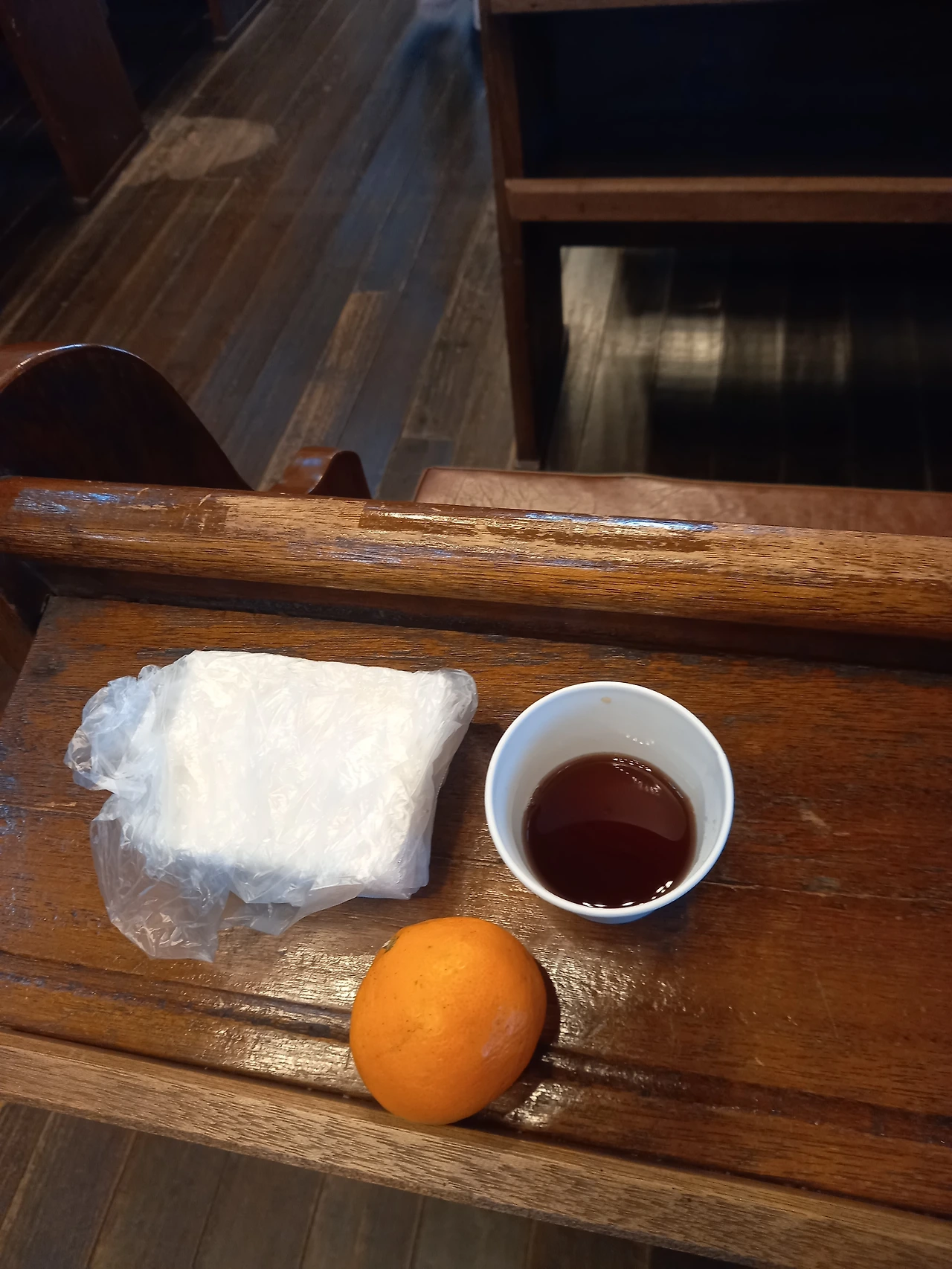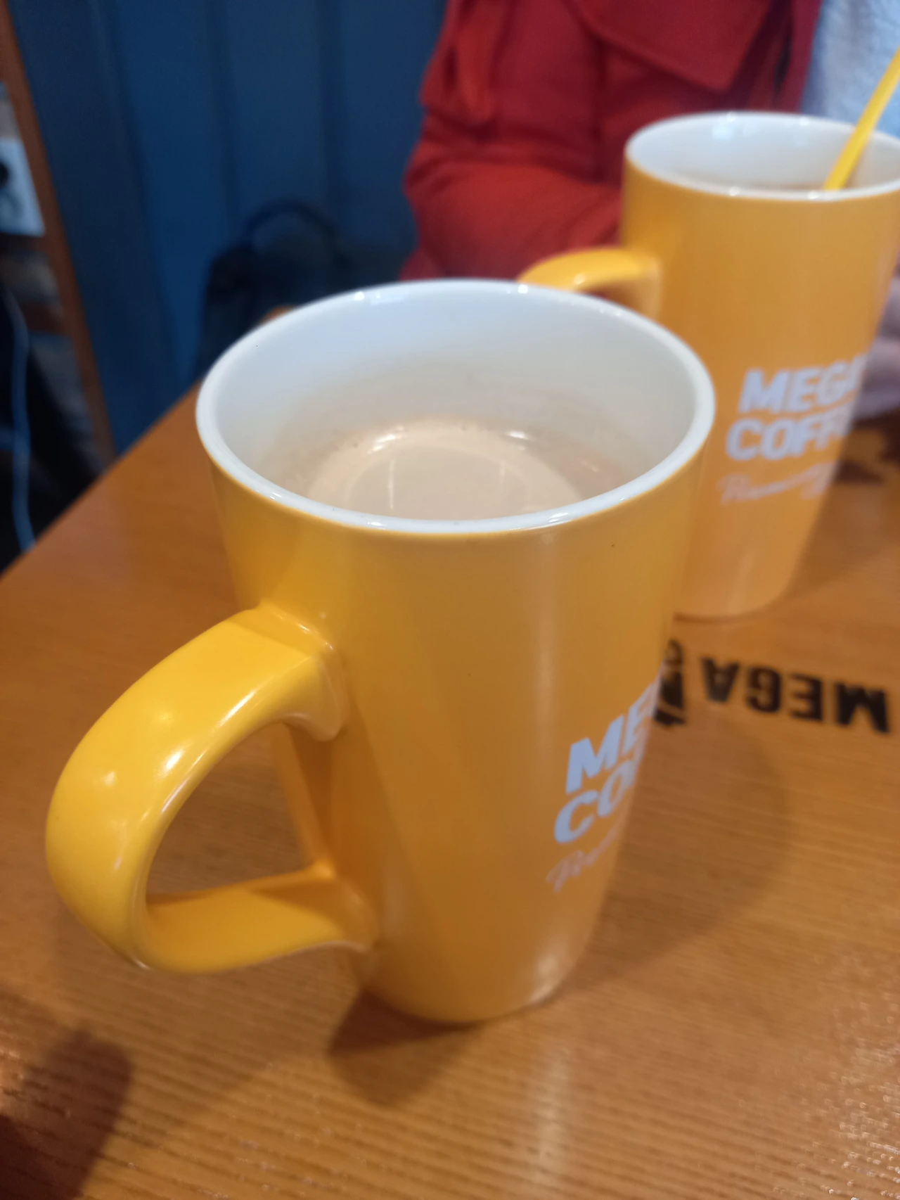 성찬례 후에 발렌틴 교우와 커피를 마시다. 평안한 성탄대축일이다.