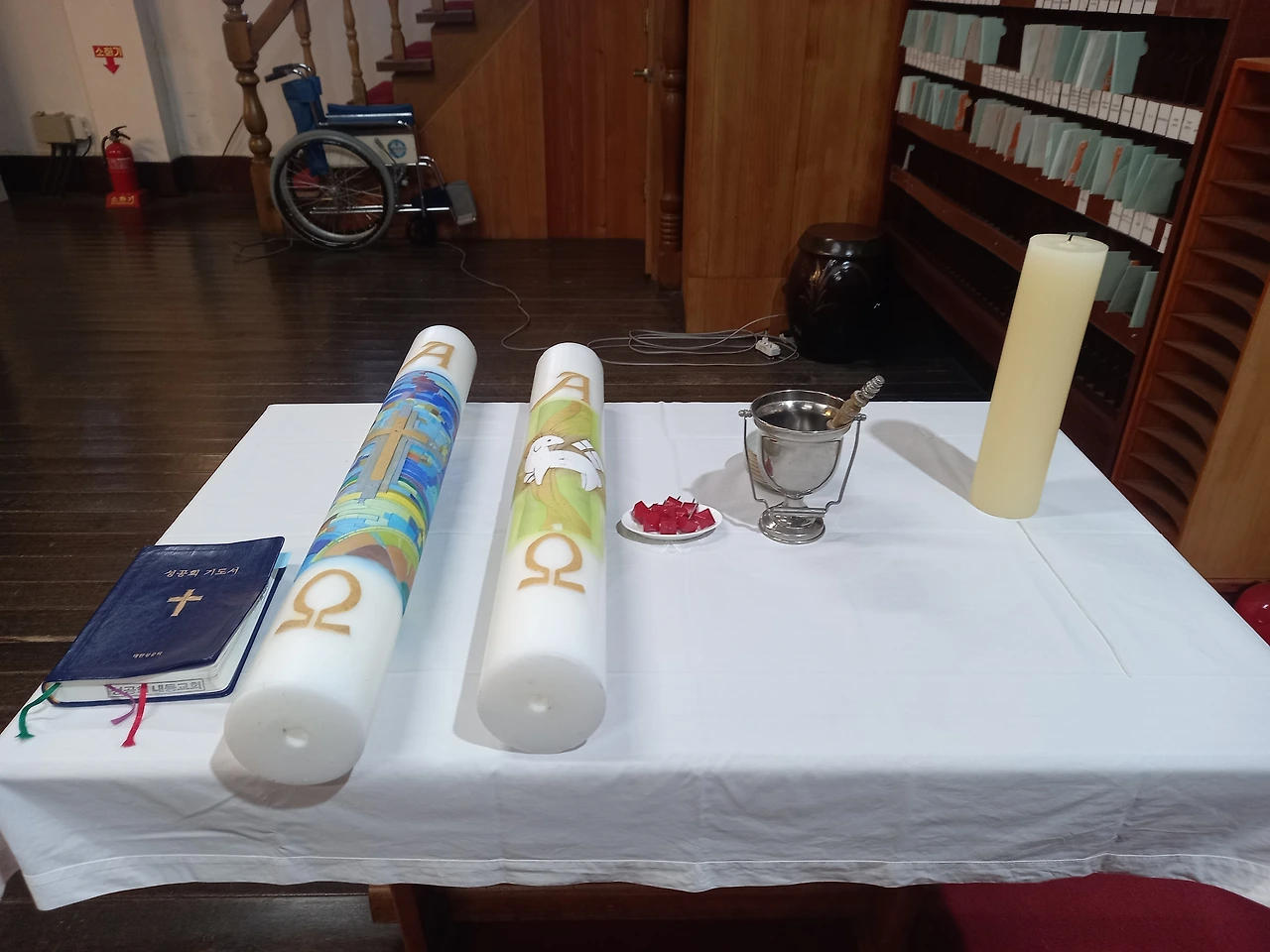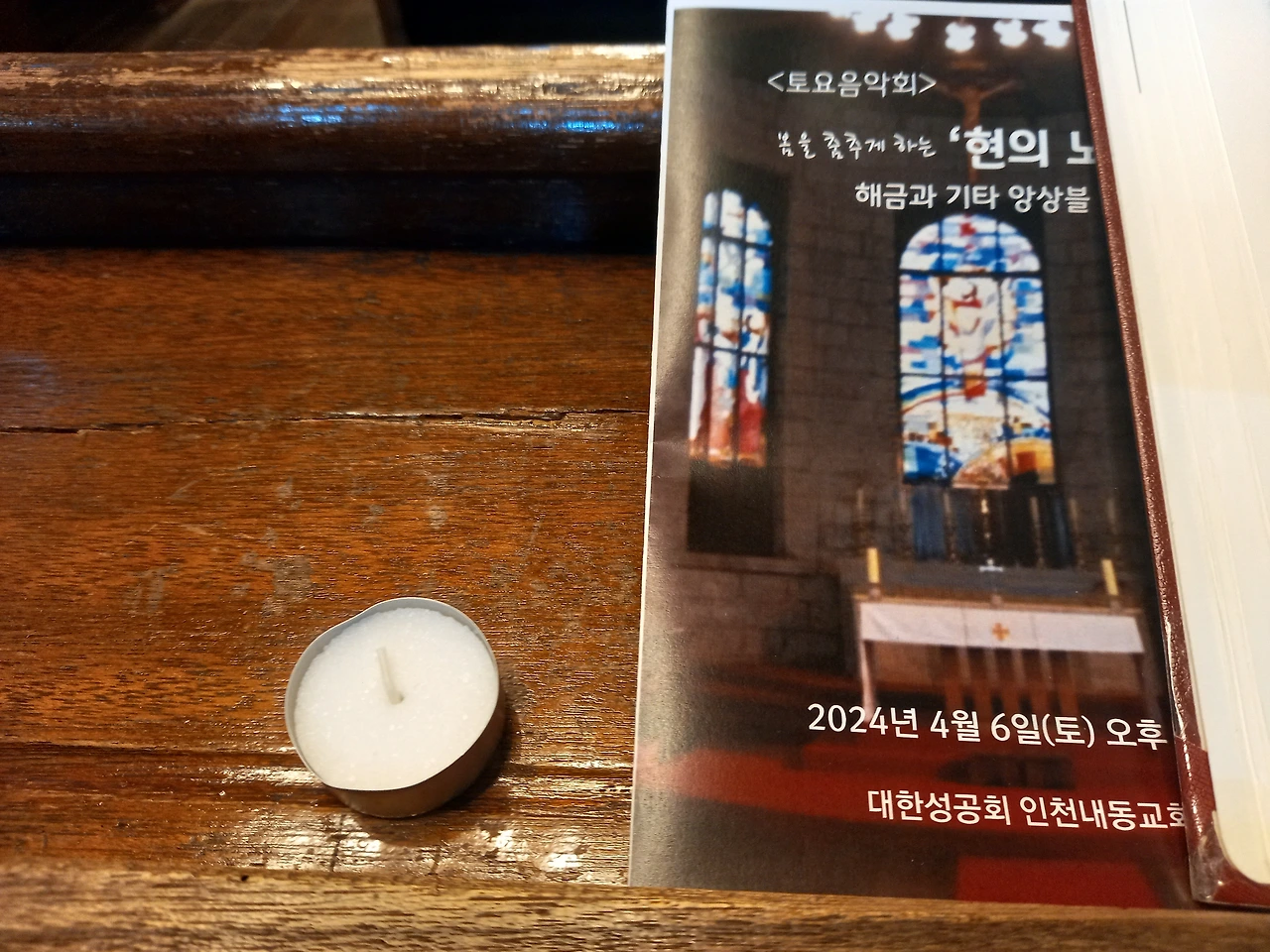 부활밤 기도. 전례에 함께 하고자 왔습니다. 횃불트리니티신학대학원대학교 김진혁 교수는 우리가 믿는 것들에서(복 있는 사람)에서 예전에 따라 예배하는 교파를 빼고, 개신교의 대부분이 성 토요일을 기억하지 않는다고 염려했는데, 성공회는 성공회기도서에 따라 성 토요일에 부활전야 저녁기도와 부활밤 전례로써 기도와 예배를 합니다. 유대인들의 역법으로는 0시가 아닌 저녁에 다음날로 바뀌기 때문이라고 장기용 요한 신부님이 설명하셨습니다