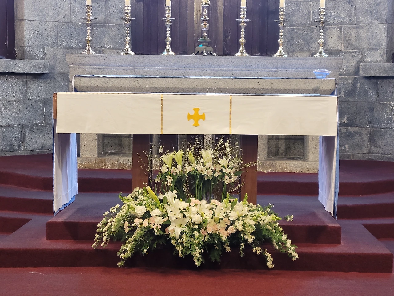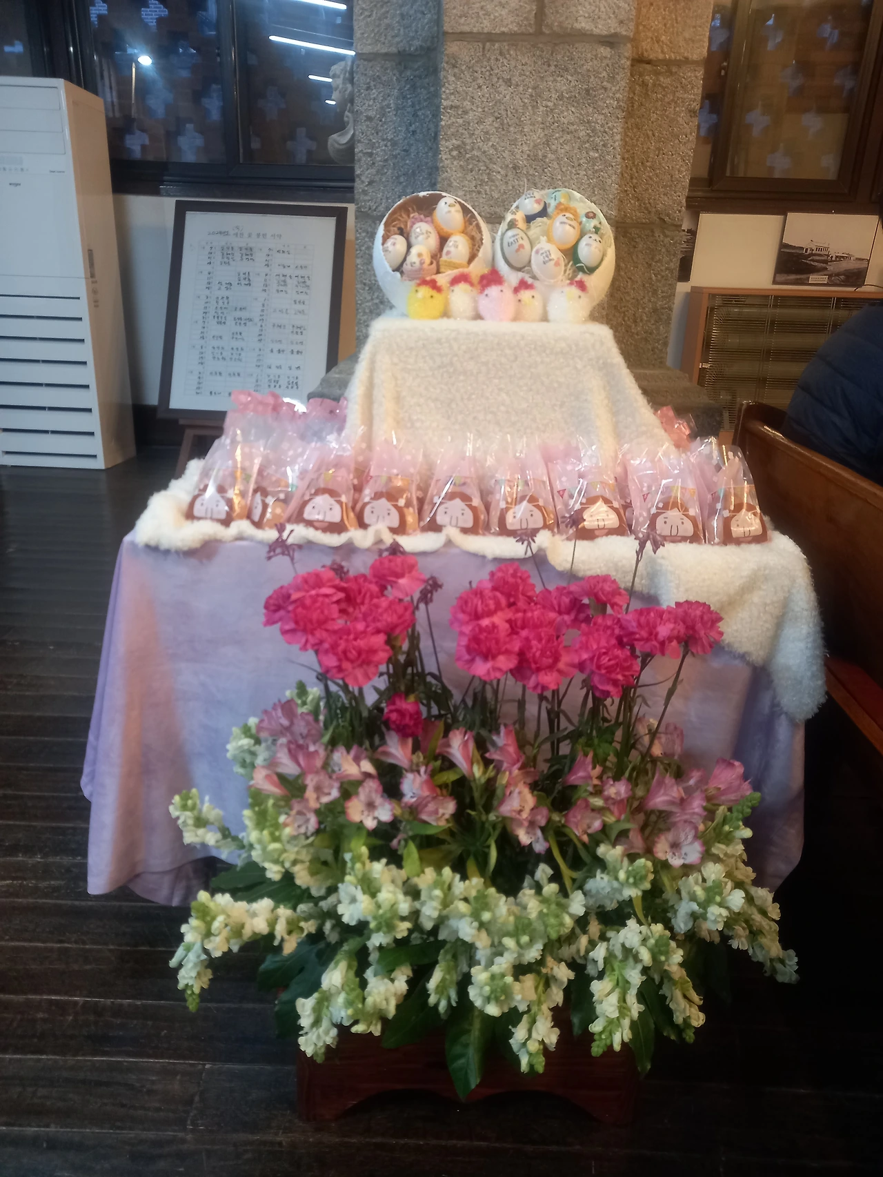 제가 보낸 봉헌으로써 교회의 부활대축일 제대를 제가 보낸 봉헌으로써 산 꽃과 교회의 꽃으로써 꾸몄다고 합니다. 루시아 교우님 말씀입니다.