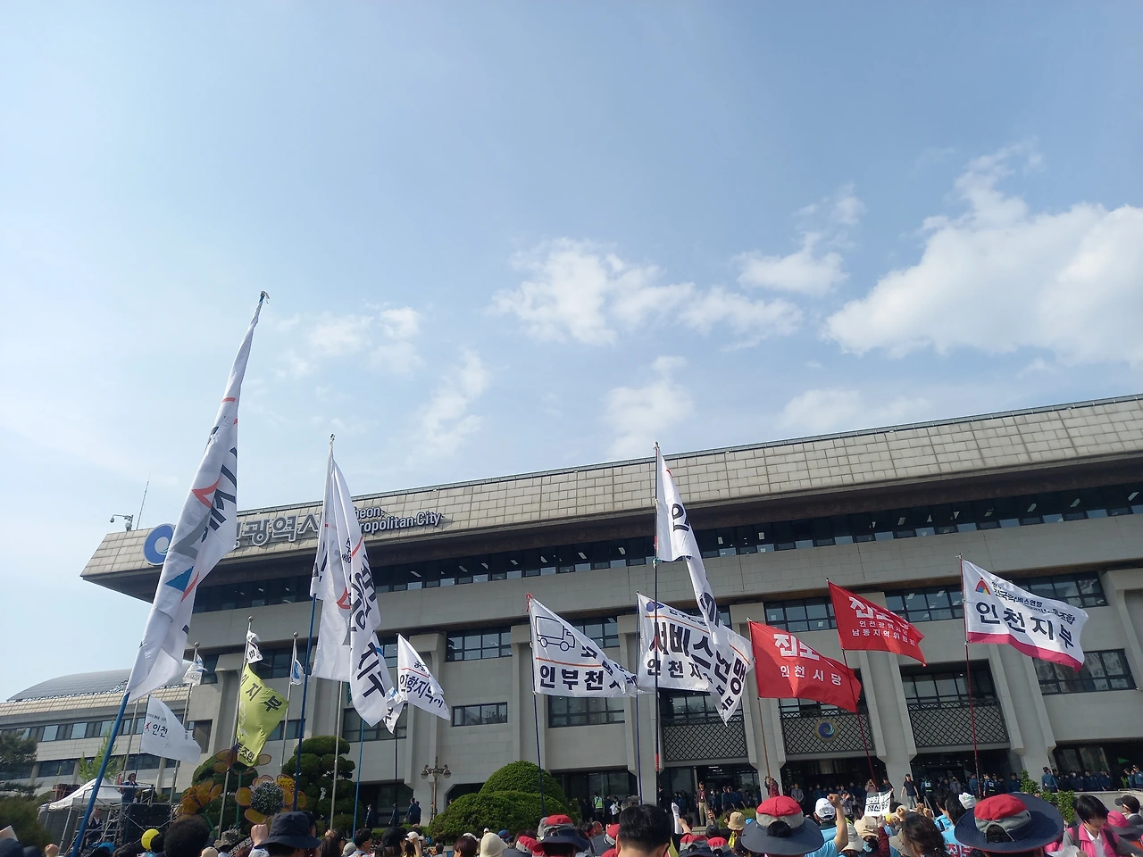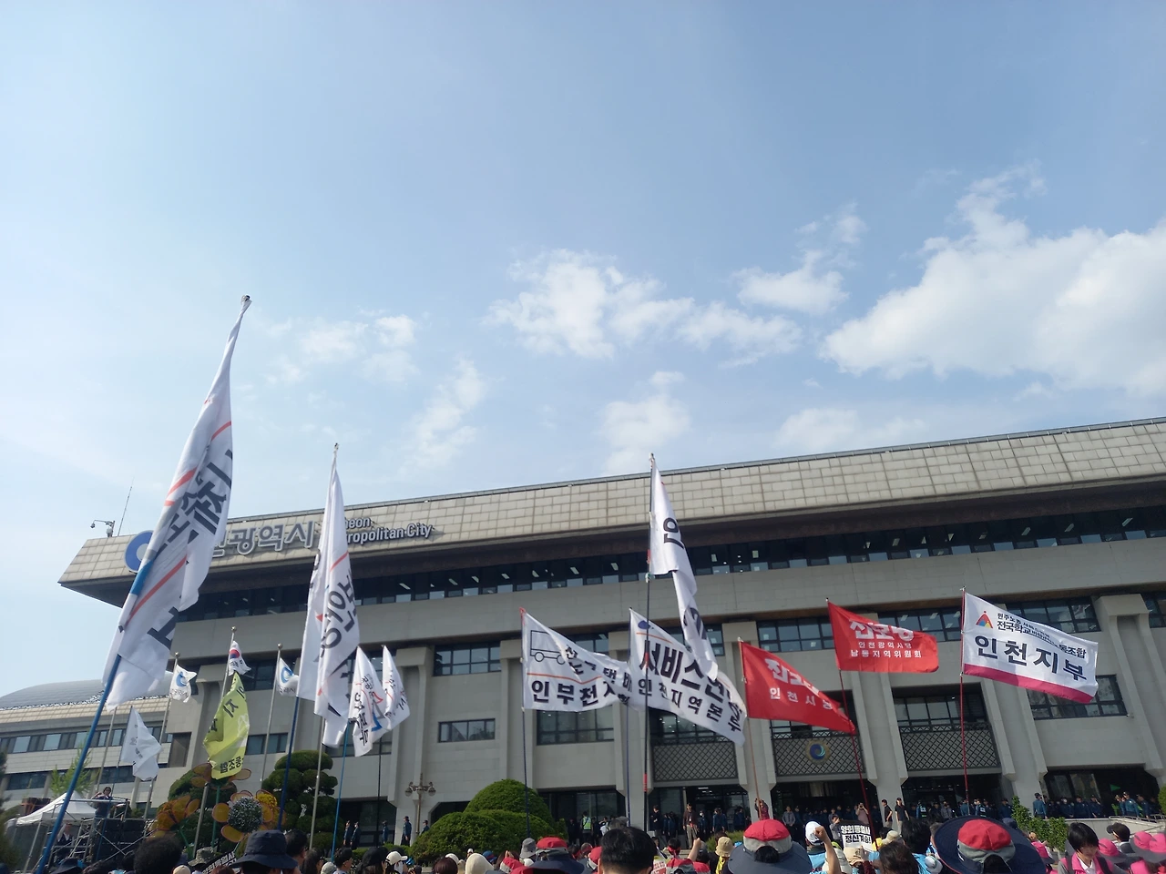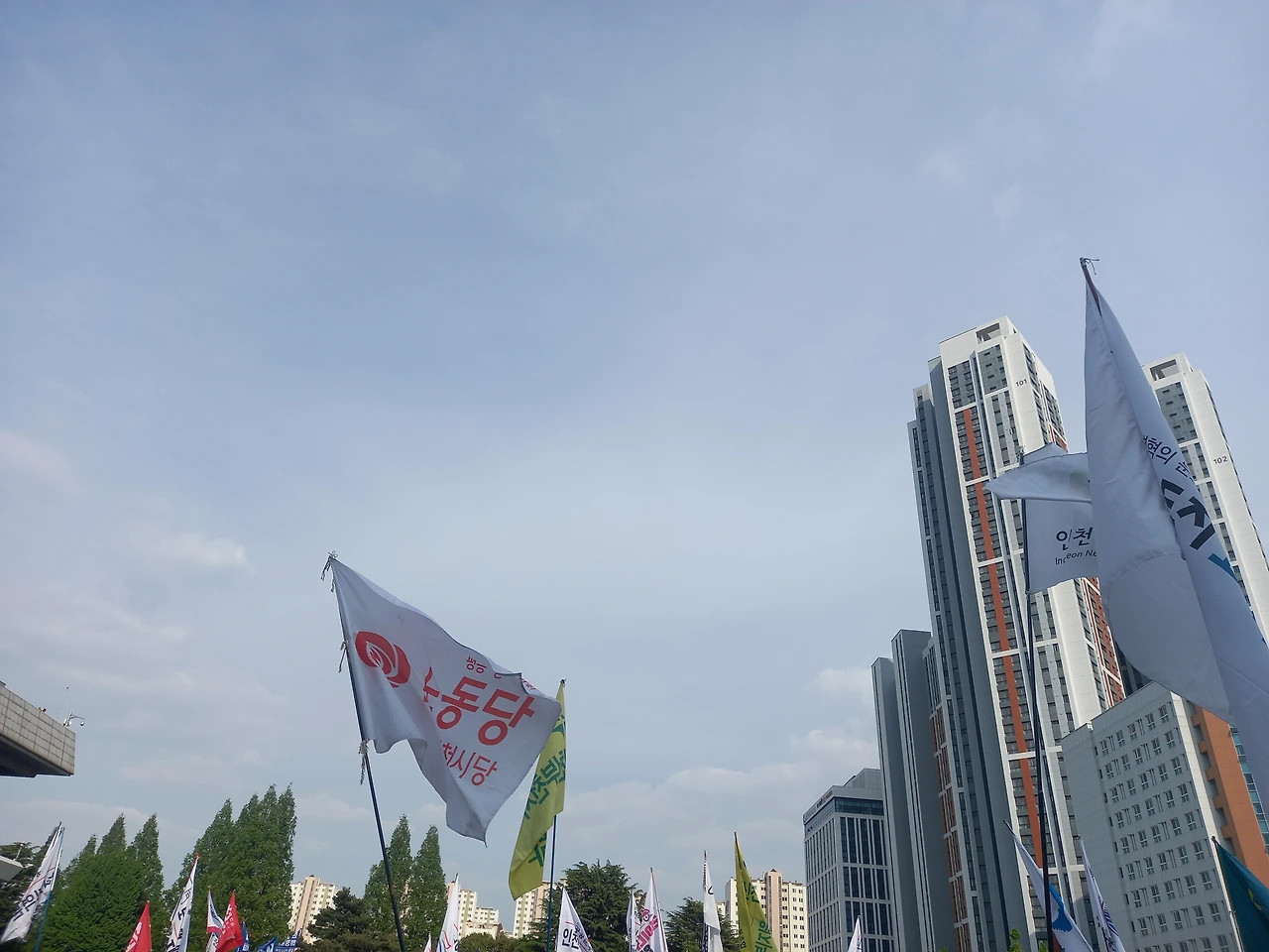 노동절 대회를 인천시청에서 마저 히고 있습니다.