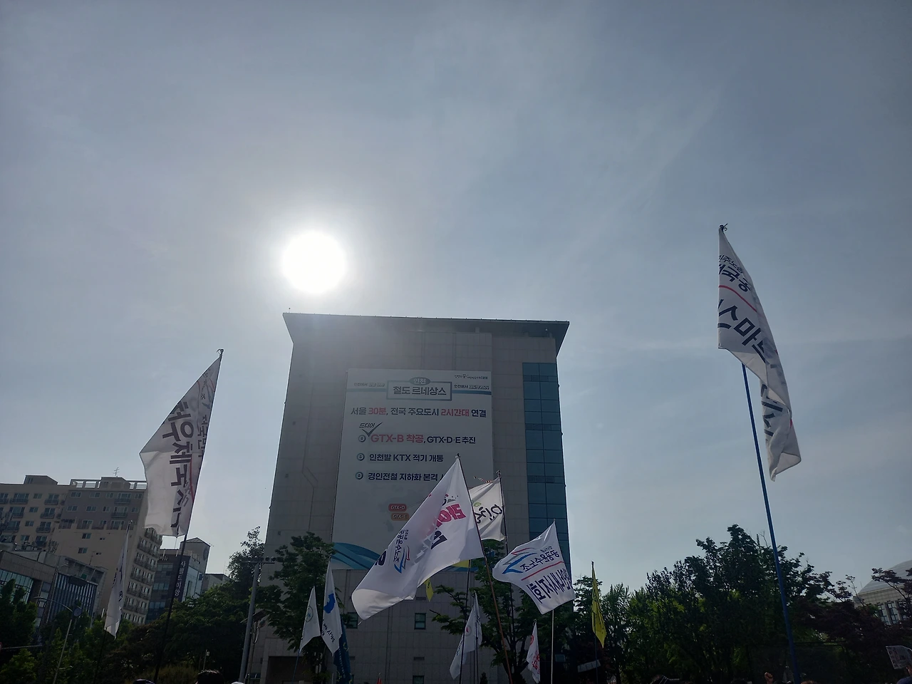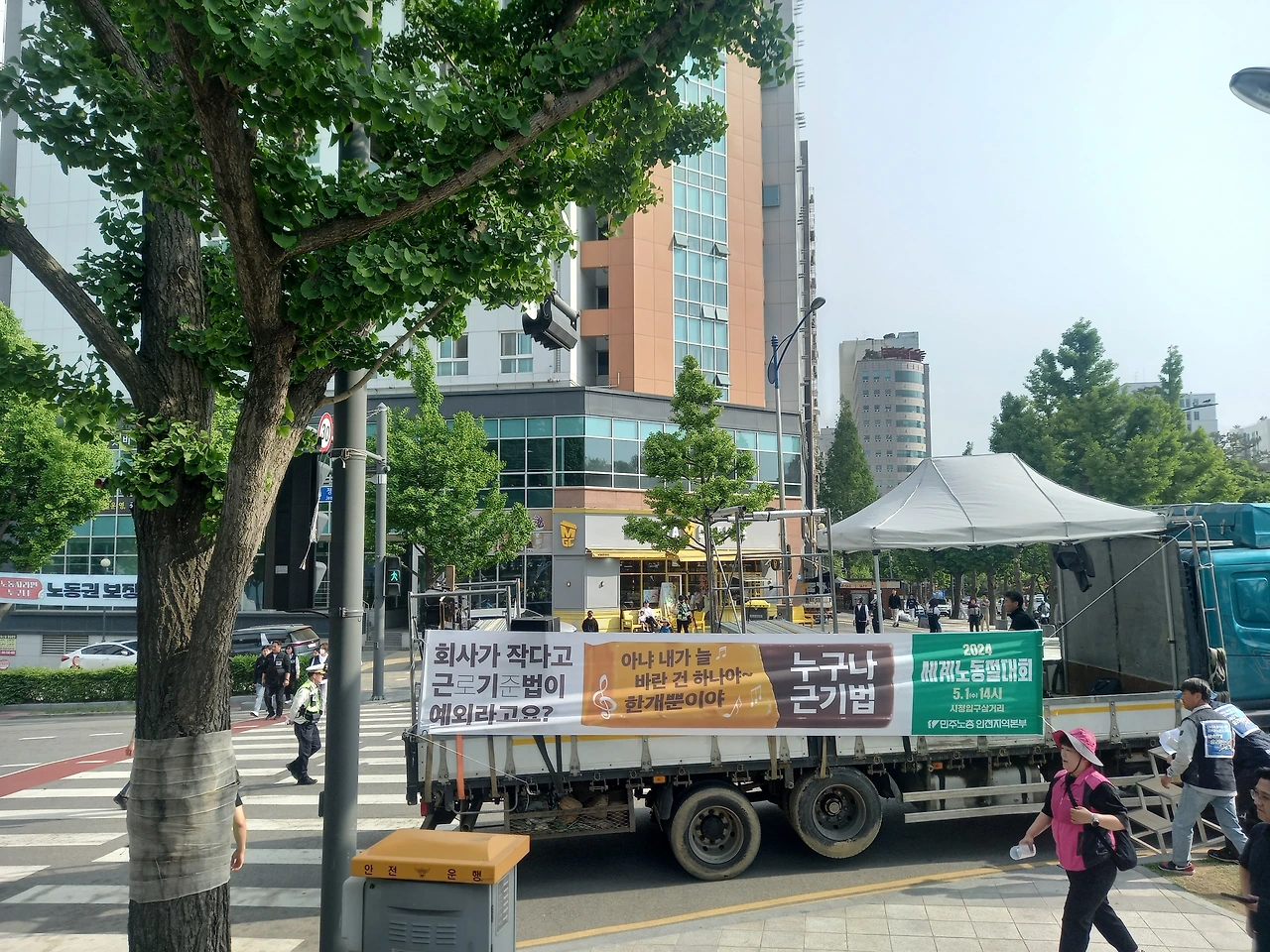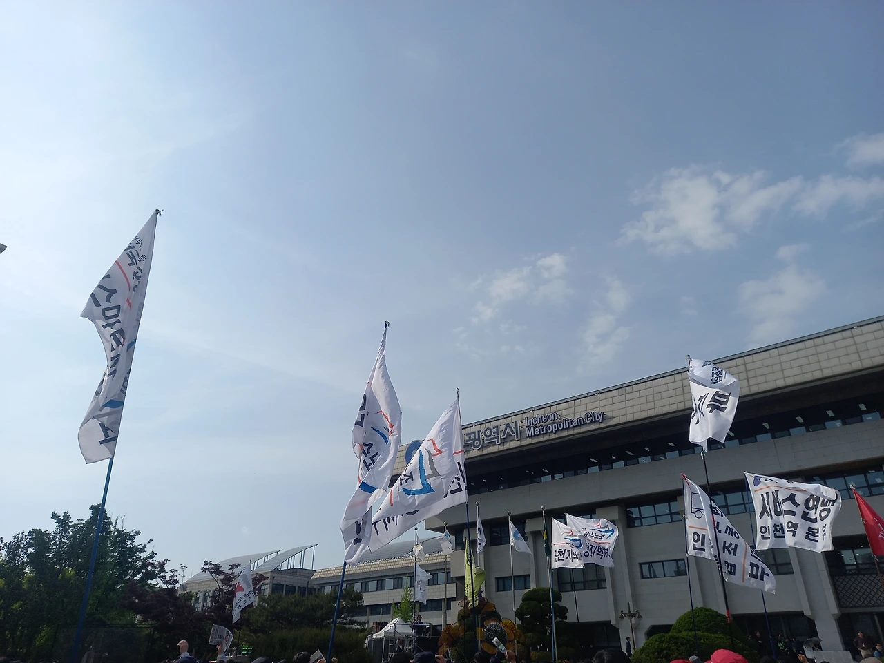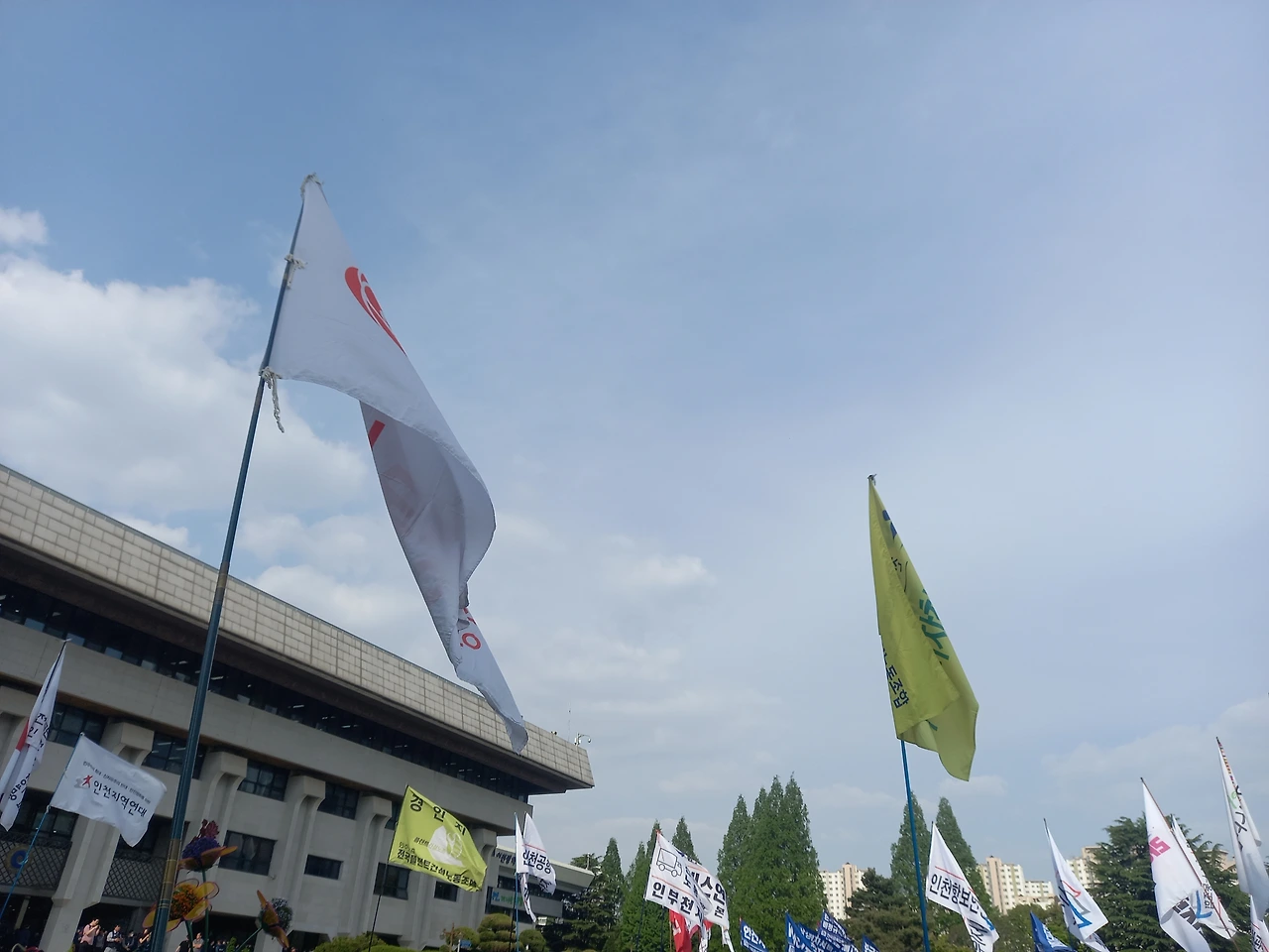 노동절 대회를 인천시청에서 마저 히고 있습니다.