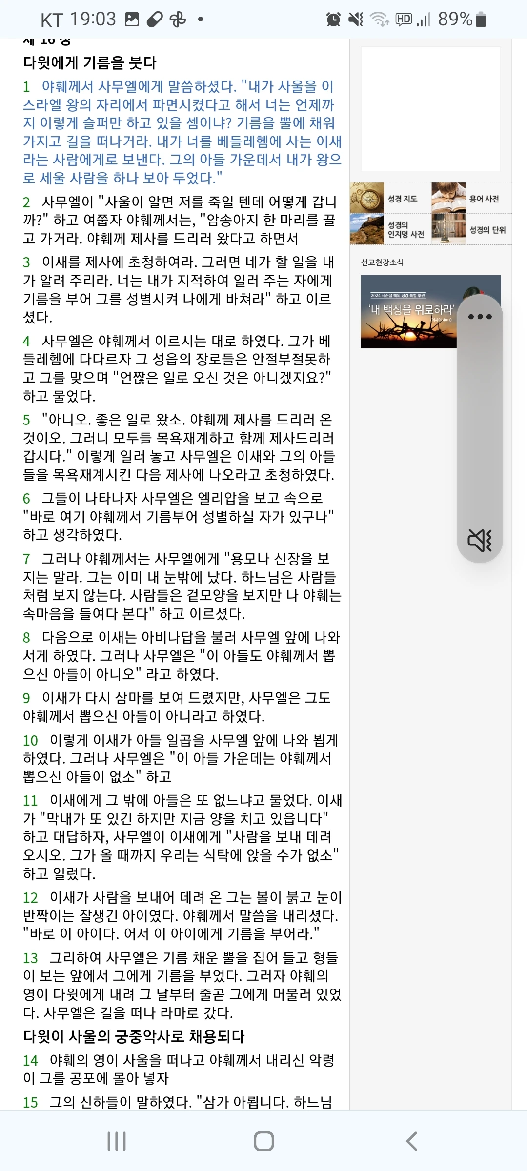제1독서를 함. 아훼께서 사울을 폐하고, 사무엘 예언자가 잘난 형들을 제치고 양을 치던 막내인 다윗을 왕으로 세움. 부제님께 연락을 받고, 엄마 말씀대로 전날 연습을 함.2024.6.16 연중11주일