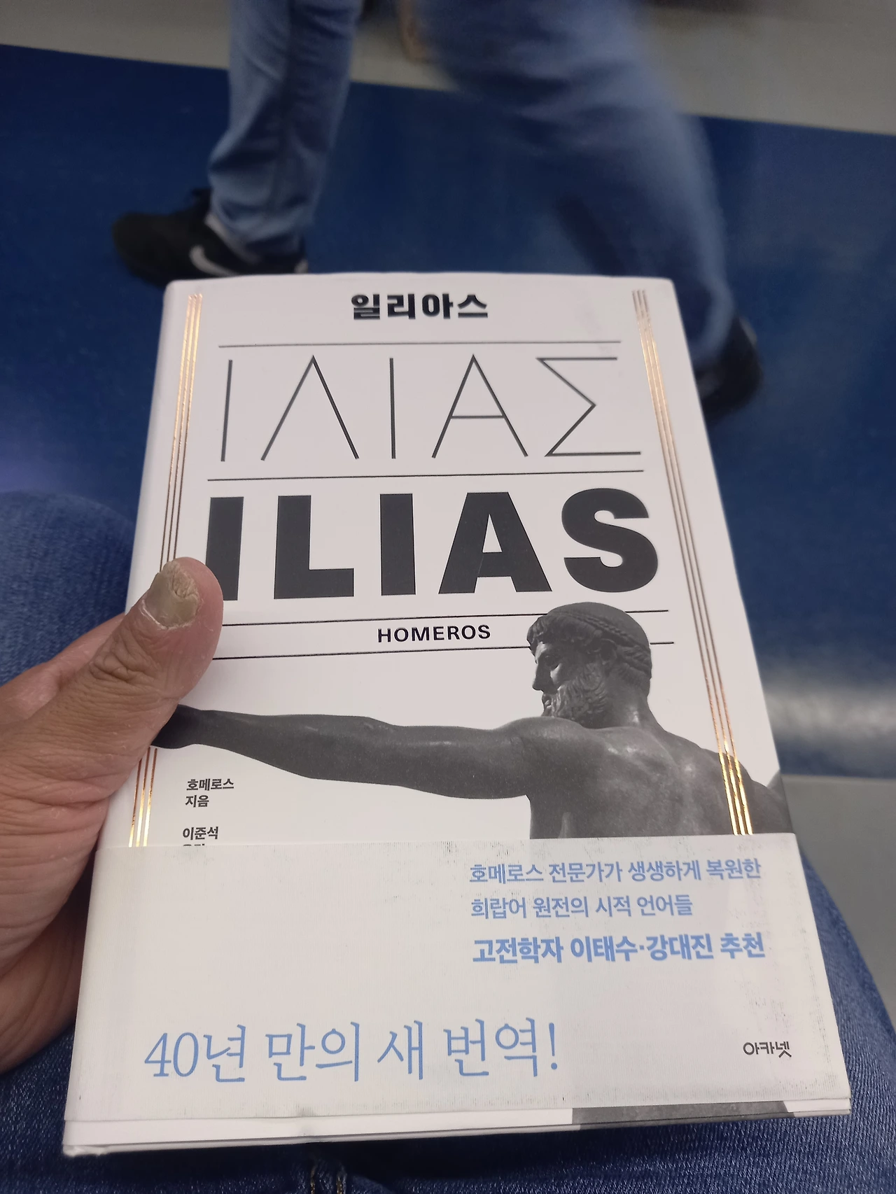 일리아스(호메로스, 이준석 옮김, 아카넷)을 호메로스 시인의 문장을 즐기며 읽고 있다. 편역한 일리아스를 읽고나서 고전학자인 이준석 방송통신대학교 문화교양학부 교수기 헬라어에서 우리글로 완역한 일리아스를 읽고 있다.트로이아 전쟁이리는 역사와 신화라는 고대 그리스,트로이아인들의 종교로써 호메로스는 아름다운 서시시를 쓰고 있다. 프리아모스 트로이아 국왕과 아가멤논 그리스 국왕의 제사이야기를 읽고 있다.