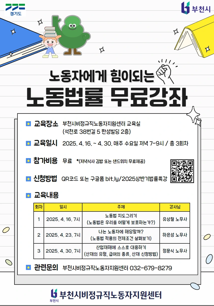 부천비정규직노동자지원센터에서 노동법률 무료강좌를 합니다.