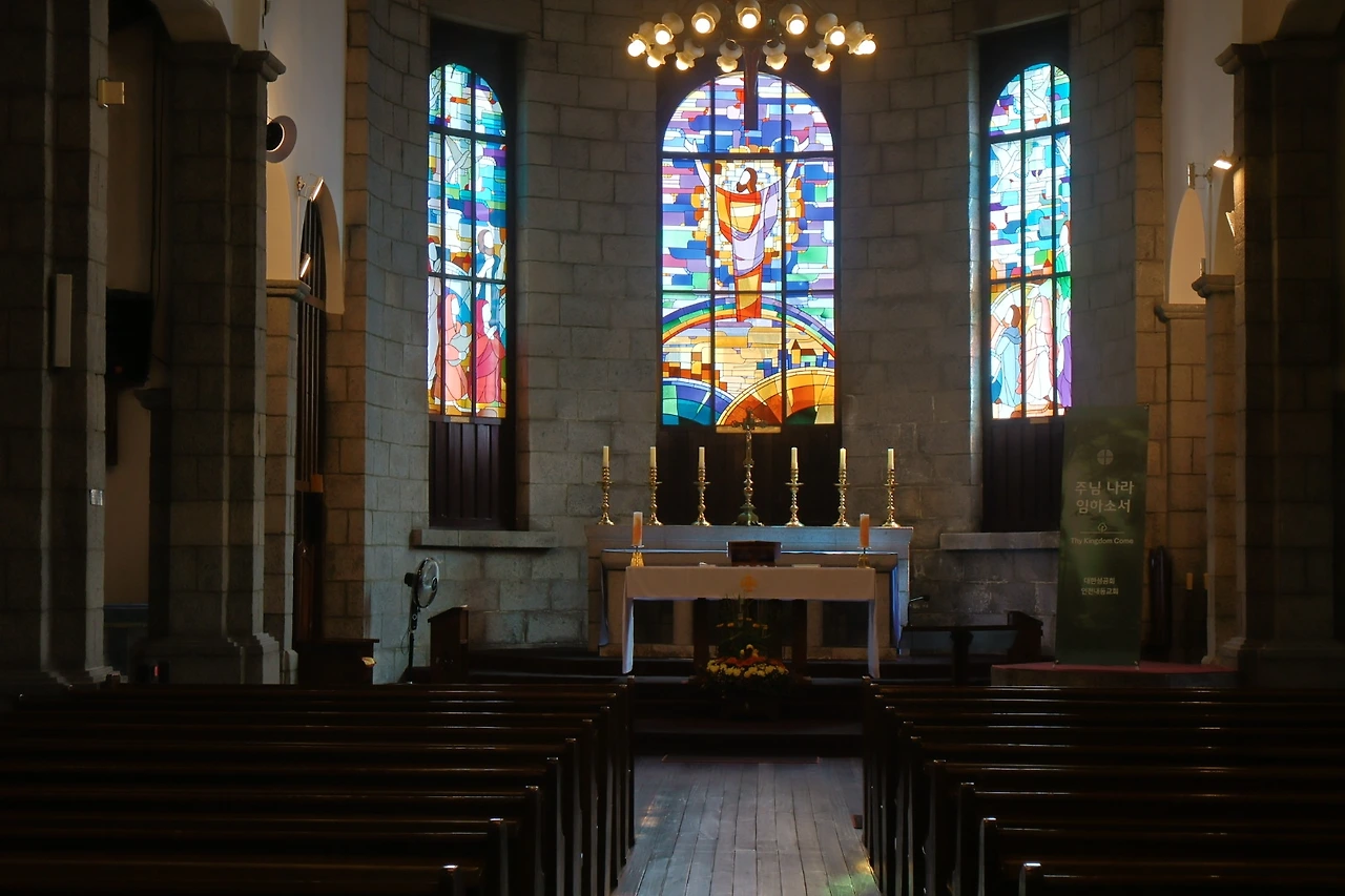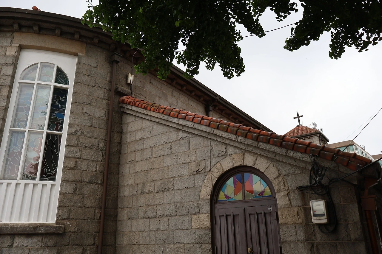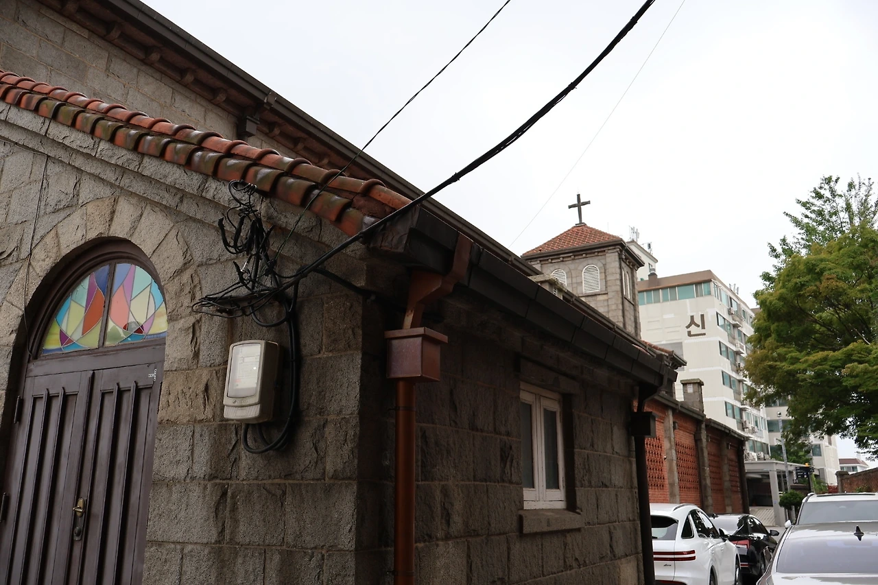 성공회 내동교회와 꽃밭입니다