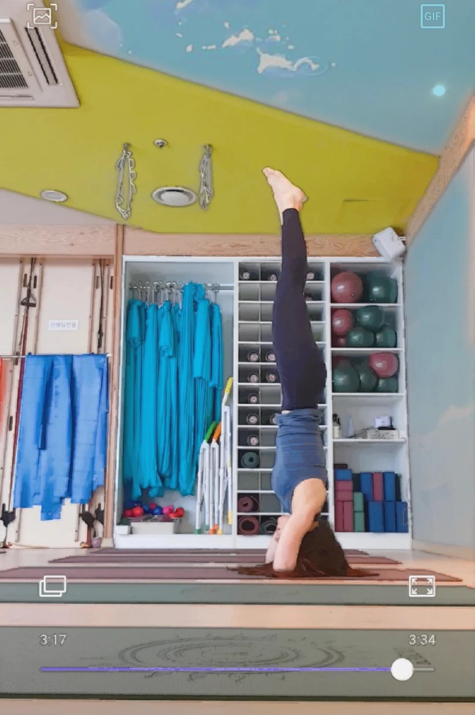 마지막, 머리 서기 자세(Salamba Sirsasana)로 마무리. Salamba는 '지탱하다', Sirsa는 '머리'라는 뜻이다. 두 발이 아니라 머리로 서는 것이다.