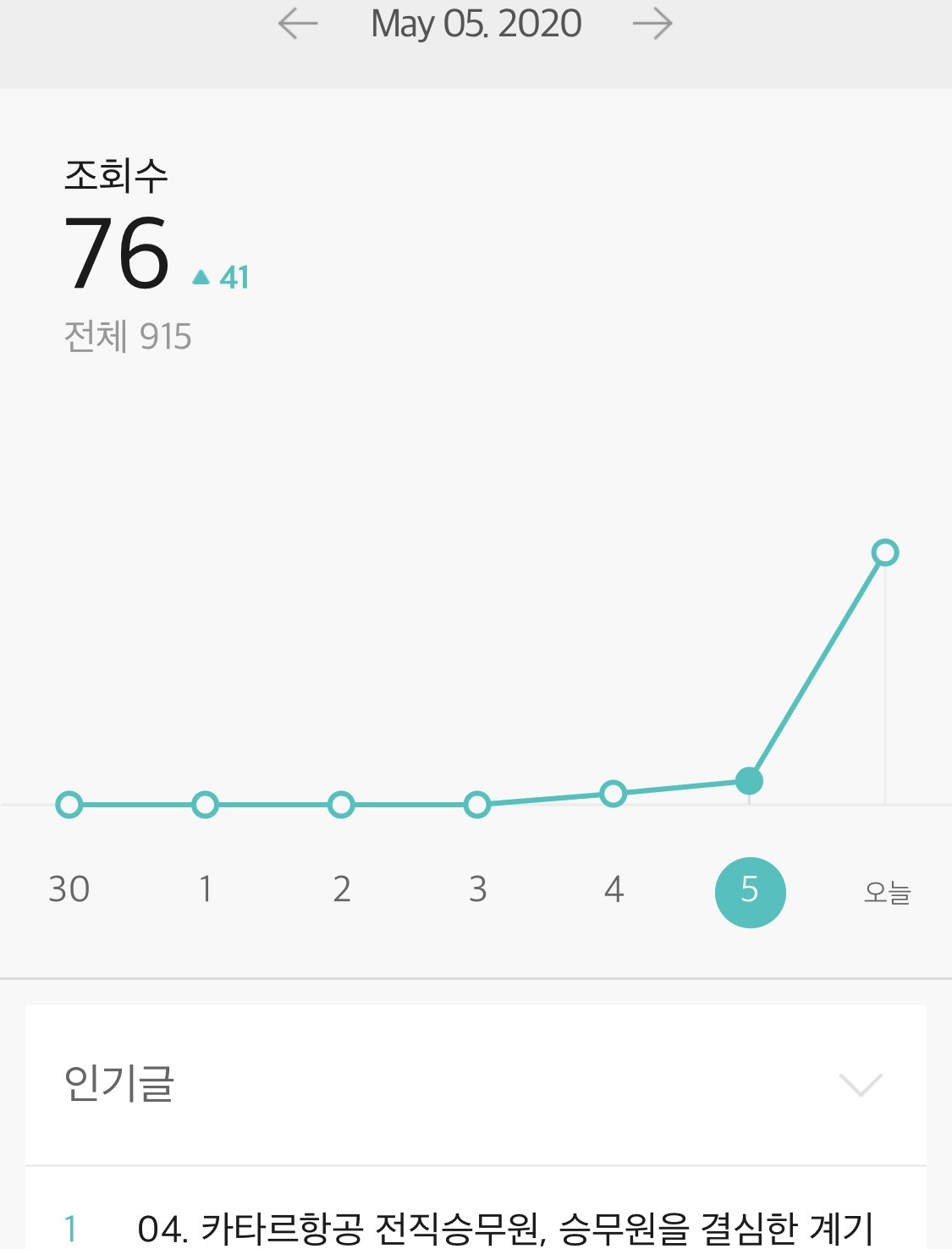 생각하던 차에 이전과는 폭이 다른 생각지도 못한 조회수를 확인합니다.