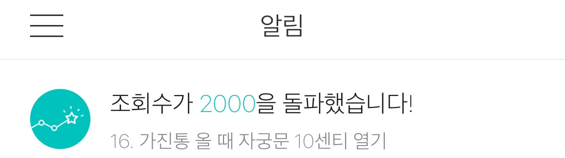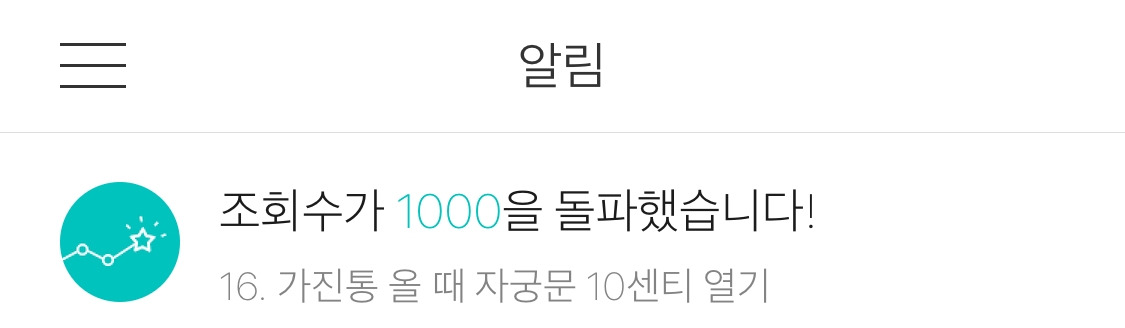 가진통 올 때 자궁문 10센티 열기 글의 조회수가 1000 알림에서 7000 알림까지 울립니다.