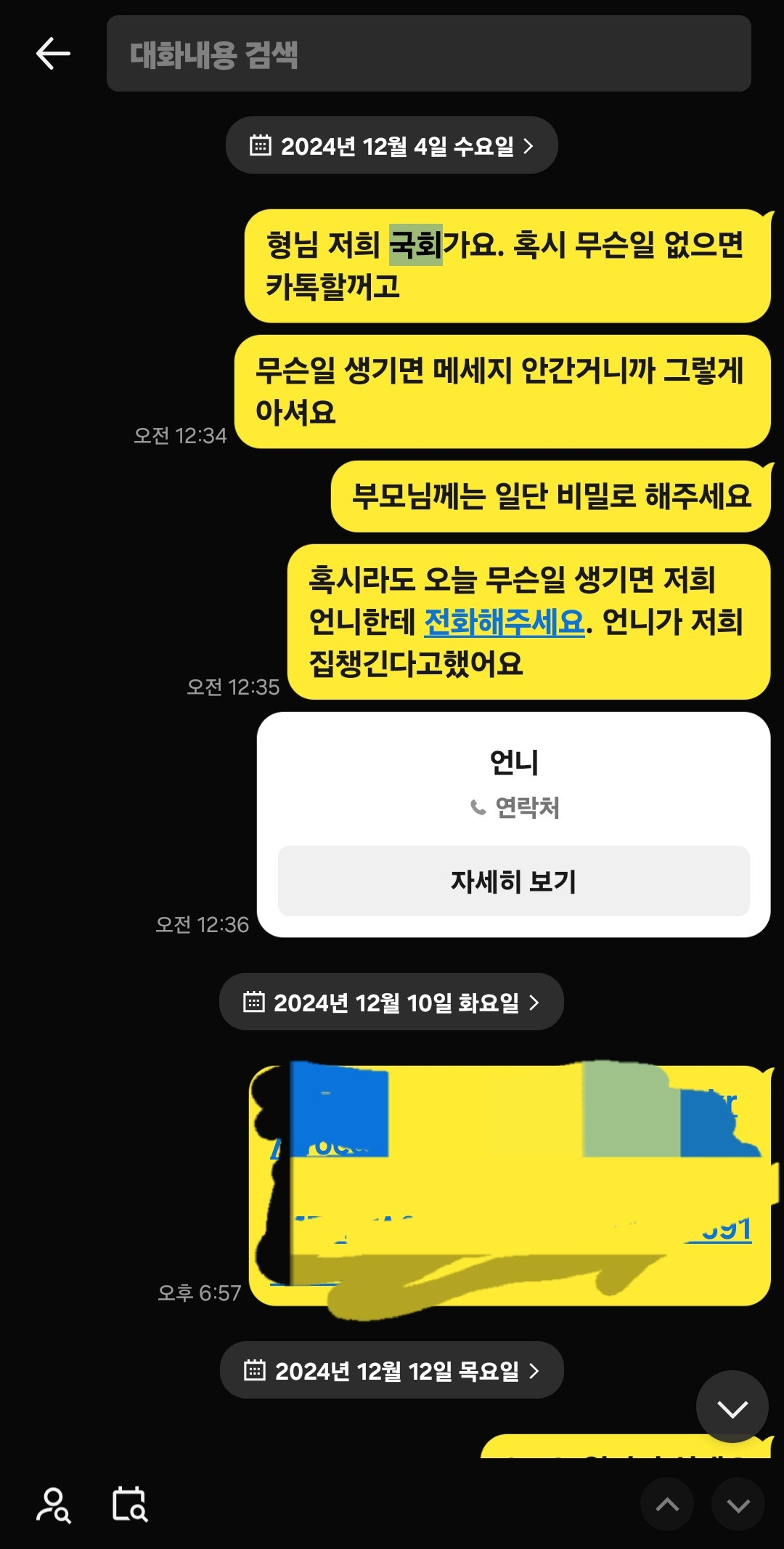 급하게 나와서 가족들에게 카톡을 보냈다. 우리 어머니와 시어머니께는 차마 죄송해서 카톡을 보내지 못하고 언니와 형님께 카톡을 보냈다.