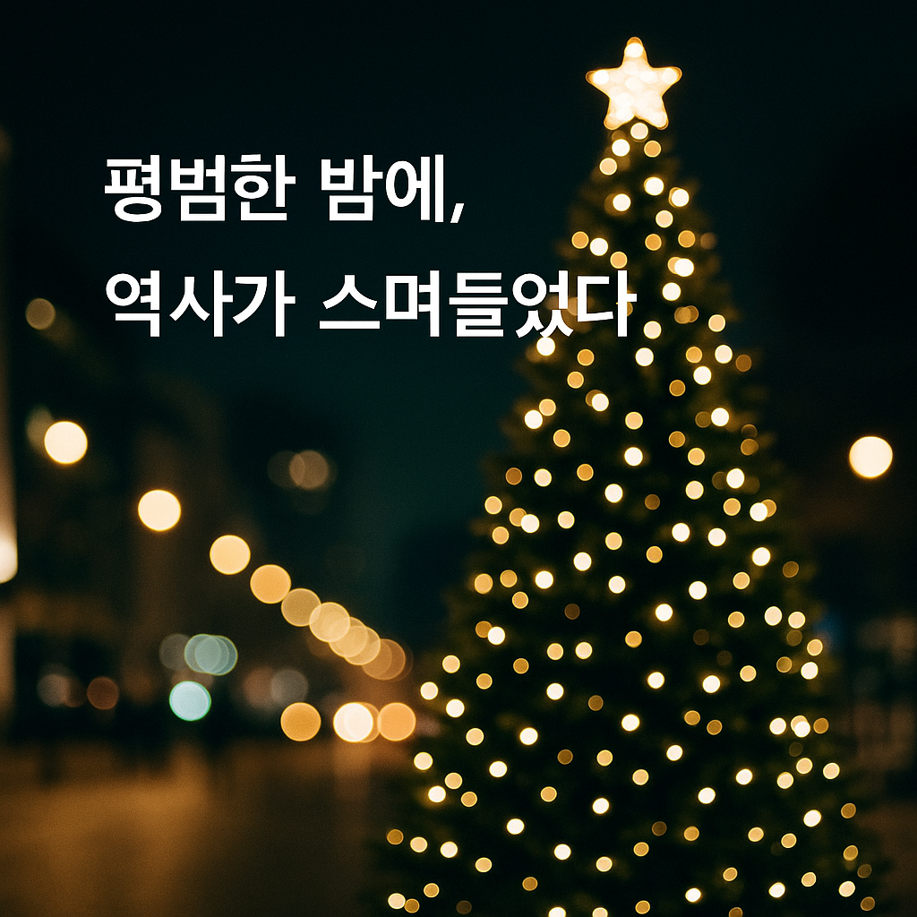 트리의 전구불빛은 평화롭게 반짝거리고, 우리는 터덜터덜 집으로 돌아왔다.
