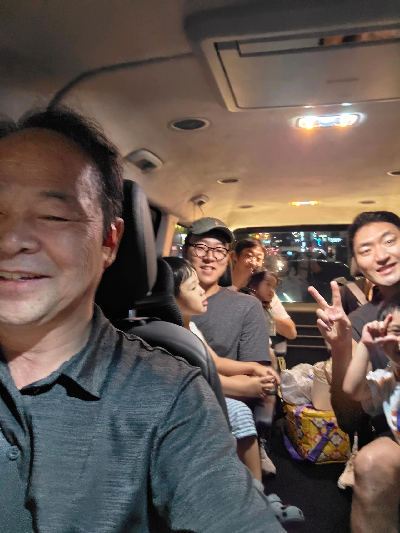 목적지 이동하며 대화를 들어보니, 오늘 1 박 하기 위해서 아기들을 한 곳에 모아놓고 아기 아빠들끼리 재미난 금요일 불타는 밤을 지낼 계획이 있는 것 같습니다. 참 좋은 그림이라 손님의 양해를 구하고 셀카를 한 방 찍었습니다.