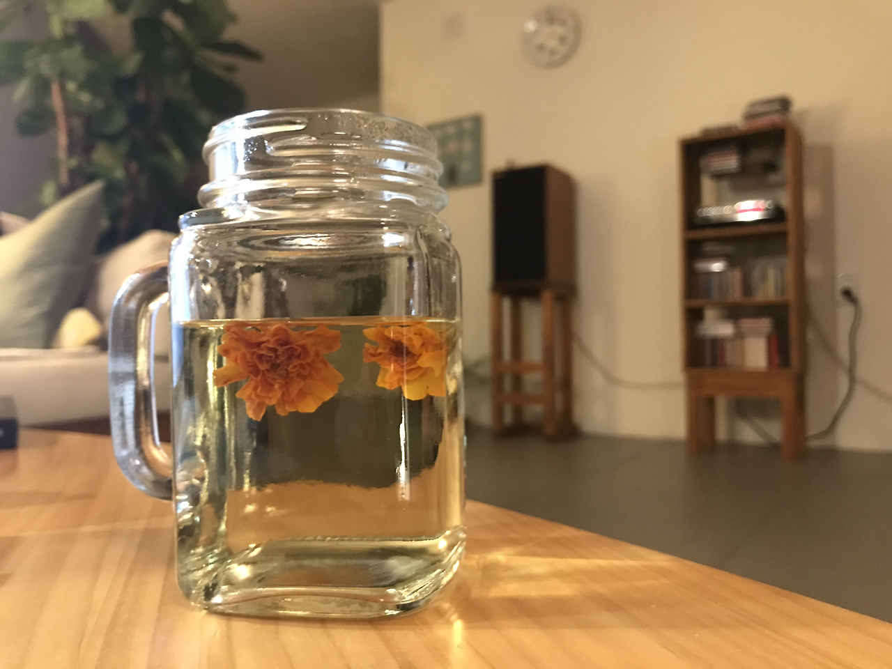 친구가 보내 준 메리골드 차에 뜨거운 물을 부었다. 펫 매스니의 연주가 흐르는 동안 메리골드 꽃이 유리잔 안에서 활짝 피었다. 마치 작은 금붕어가 살살 헤엄치는 것 같다. 메리골드 꽃을 한 송이씩 거두어, 햇볕과 바람에 말렸을 친구의 손길이 나의 밤을 어루만지는 기분이 들었다.