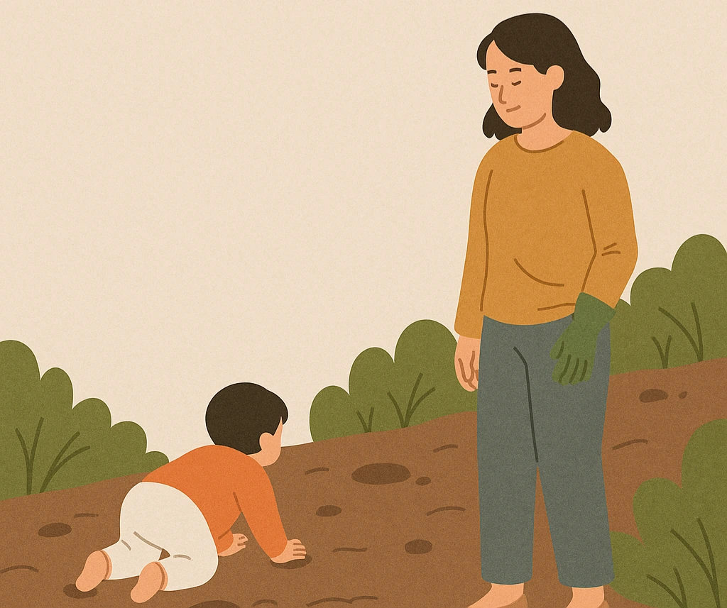 작은 손으로 낯선 흙을 짚으며