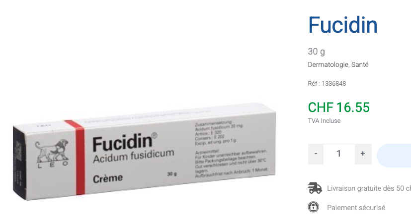 “Fucidin… 어라, 이거 후시딘이잖아?” 우리 부부는 이 상황이 너무 어이가 없어서 그저 웃을 수밖에 없었다. 그래도 가격이 16.55프랑(2만 5천 원) 정도라서 착해 보이는 건 뭘까? 감사한 마음으로 불어로 써진 후시딘을 구입하여 집으로 돌아왔다.