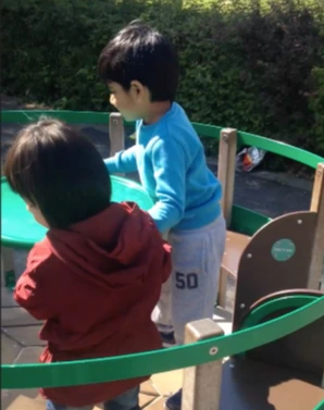 일부러 아이들이 없는 회전의자 쪽으로 딸을 데리고 갔다. 그런데 저 멀리서 장난기 넘치는 남자아이가 우리를 향해 달려온다. 속으로 “제발 여기로 오지 마라”라고 외쳤지만, 그는 정확히 우리 앞에 멈춰 섰다.