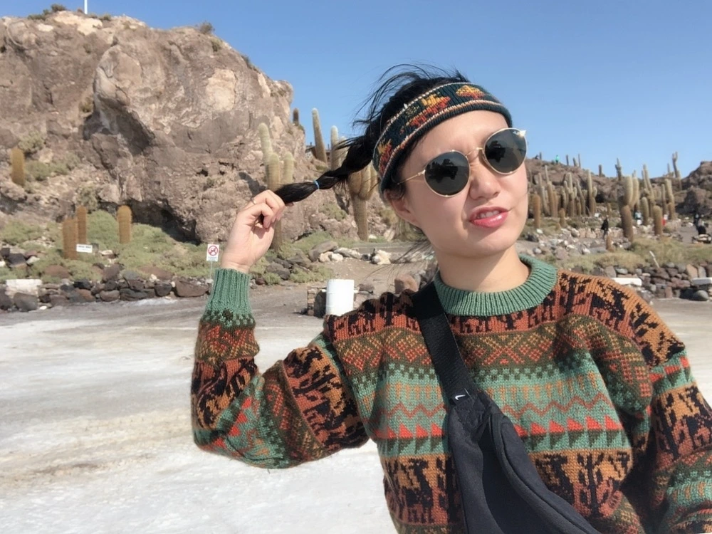 바지를 하나 사기 시작하니까 다른 것들도 눈에 들어오기 시작했다. 패턴이 똑같아서 별로라고 생각했던 니트들, 여행객들이 머리에 하고 있는 니트 머리띠. 결국 우유니 투어 중에 잠시 내려주는 시장에서 니트도, 머리띠도 장만했다. 상의, 하의, 액세서리까지 풀착장 한 배낭여행객이 되었다. 아, 사진을 첨부하면서 알았는데, 그 시장에서 저 모자도 샀다. 마치 다이어트 중 입이 터진다고 하듯 우리의 물욕도 터졌었나 보다.