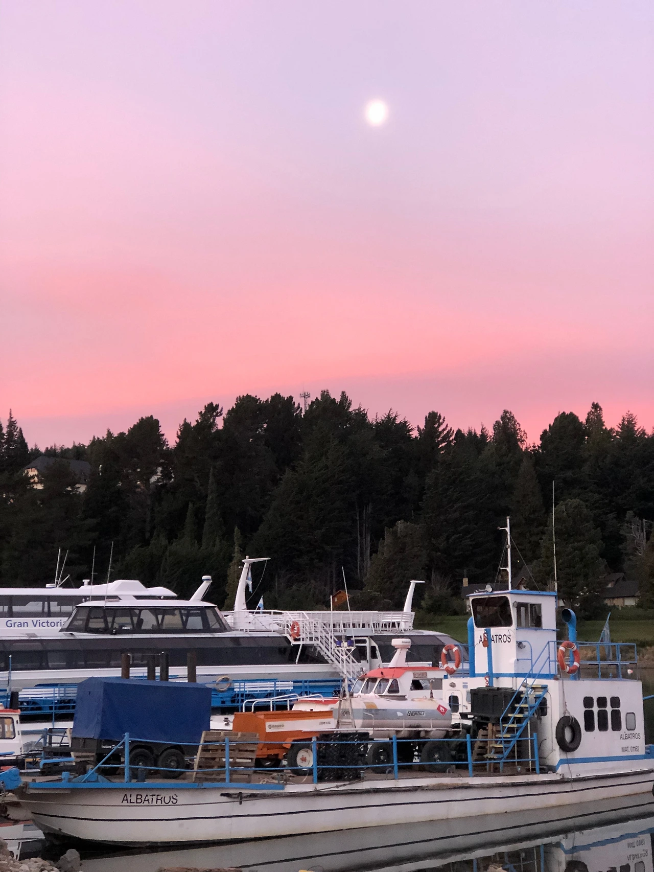 숙소에 가서 숙소가 마음에 들면 같은 곳에서 연장하고, 아니면 옮겨야지 했다. 이게 웬일. 바릴로체 시내에서는 거리가 있었지만, 방 안에 자그마치 벽난로가 있었고, 숙소 바로 앞에는 호수가 있었다. 바로 같은 곳을 연장했다. 여행 내내 벽난로가 있는 숙소는 바릴로체가 유일했다. 바릴로체에서의 시작이 좋았다. 비록 바릴로체에서 유명한 스테이크 집 중 한 곳은 비성수기라 문을 닫았지만, 그 대신 마음에 드는 서점을 찾아 스페인어 책을 하나씩 샀다. 숙소가 시내와 거리가 있어서 버스카드를 사러 시내까지 가느라 추웠지만, 그 덕에 최고의 일몰을 봤다. 바릴로체에 있는 내내 일몰을 지겹도록 봤다. 유난히도 빨간 하늘을 담느라 바빴다. 또, 아르헨티나에 있는 내내 제일 맛있는 스테이크를 먹기도 했고, 여유롭게 카페에 가서 다음 여행 일정을 짜기도 했다.