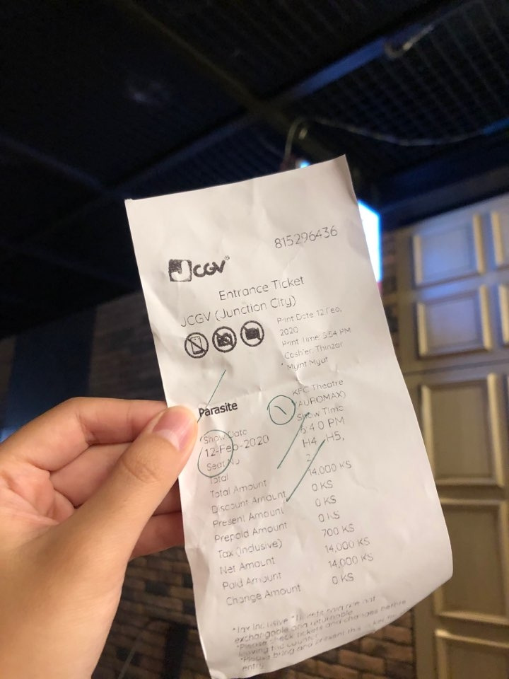 동남아 여행을 하면서 한국 영화가 영화관에 걸려있는 걸 자주 볼 수 있었다. 중국에서는 한 번도 못 봤는데, 심지어 건물의 전광판에서 광고하는 걸 보고 신기해했다. 그러다가 양곤에서 한국으로 가기 전 날, 기생충을 보기로 했다. 숙소 근처 쇼핑몰에 마침 cgv가 있었고, 저녁시간으로 예매했다. 이동할 때 넷플릭스로 보던 영화가 전부였는데, 영화관을 오다니. 감회가 새로웠다. 오랜만에 영화관에서 보는 영화인 데다가, 해외에서 한국영화를 보는 건 처음이라 더 설레었다. 같은 cgv 그런가 화장실도 한국이랑 똑같은 스타일이고, 그 안내표지판도 같은 디자인이었다. 이런 것까지 똑같이 하는지는 처음 알았다. 물론 팝콘 맛도 똑같았다. 별걸 다 신기해하면서 영화관에 입장했다. 미얀마는 신기하게 영화 시작 전에 국가가 나온다. 다들 일어서길래 눈치껏 일어섰지만, 눈동자는 갈 길을 잃었다. 신기한 경험이었다. 큰 스크린에 한국어와 한국 배우가 나오는 것도 생소한 경험이었지만, 국가가 나오는 영화관이 더 생소했다. 덕분에 미얀마에서 영화를 본 경험은 꽤나 신선한 기억으로 남아있다. 영화에 대한 기억보다는 영화관에 대한 기억이 더 선명한 아이러니같은 상황이다.