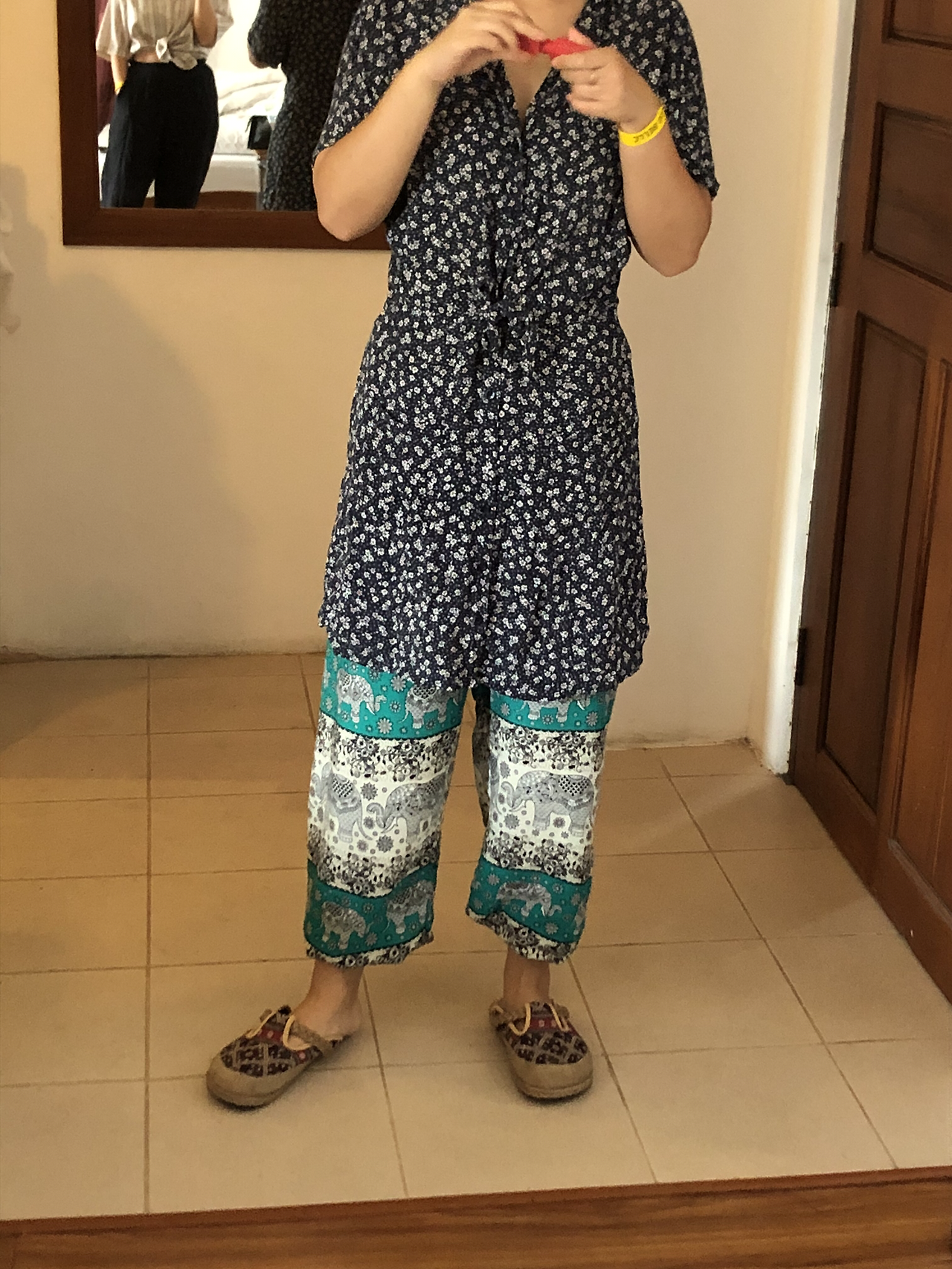 만달레이에서 준비를 하는데, 너무 웃겨서 찍었던 사진이다. 하나하나 뜯어보자면, 원피스는 스페인 h&m에서, 바지는 짜뚜짝 시장에서, 슬리퍼는 치앙마이 토요 마켓에서 산 거다. 와중에 저 손목에 노란색 띠는 게스트하우스 출입증 같은 것. 어쩌다 보니 죄다 여행을 하면서 산 물건이었다. 그게 신기하다고 느끼면서 나름... 아이템끼리 잘 어울려서 마음에 들었던 착장이다. 하지만 오해는 안 했으면 좋겠다. 저렇게 입고 나가진 않았다.