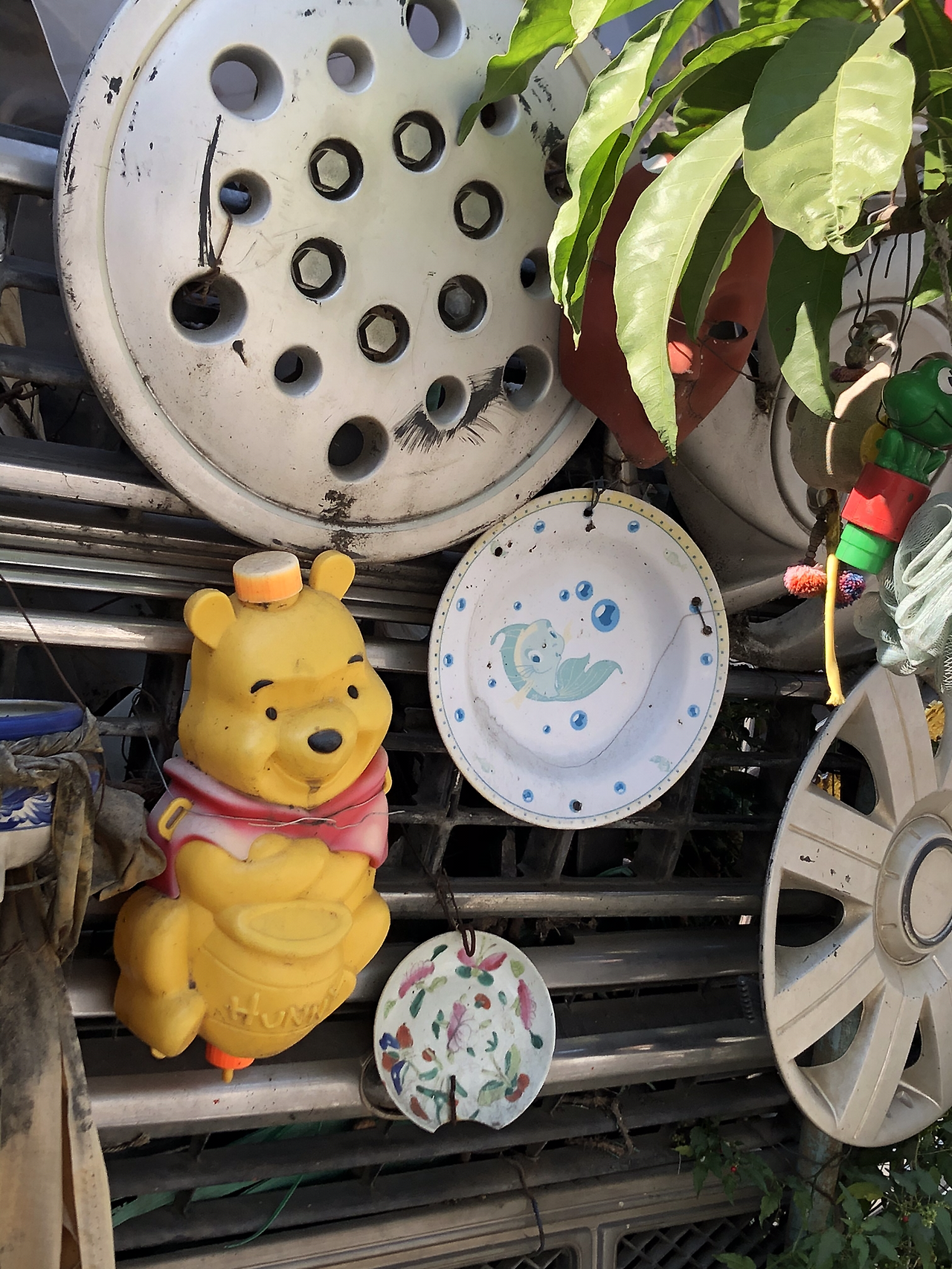 방콕에서 기차를 타고 치앙마이에 점심때 내려 꼬질꼬질한 우리는 바로 숙소로 갔다. 아직 체크인이 안 된다는 말에, 밥을 먹고, 동네를 한 바퀴 돌았다. 그러다 발견한 푸우. 기억은 안 나지만 아주 어렸을 때부터 동생은 푸를 좋아했다. 그래서 집에도 푸우가 정말 많은데, 괜히 저기서 보니 반가웠달까. 심지어 연식이 꽤나 되어 보였다. 언제부터 철 고물들 사이에 끼어있는지는 모르겠지만, 귀여워서 찍어놨다.