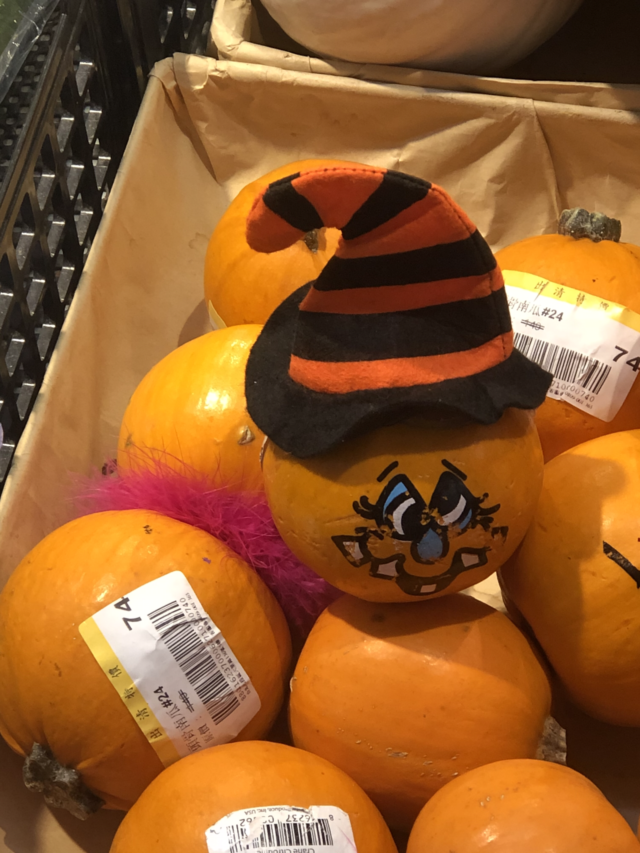 대만에에서도 마트 구경은 참 자주 다녔다. 그러다 발견한 귀여운 감. 할로윈 시즌이라서 예쁘게 꾸며놨나 보다. 아마 과일 코너를 지나간 모든 사람의 눈길을 사로잡는 것이 아녔을까. 눈코 입까지 야무지게 그린 게 너무 귀여웠다.
