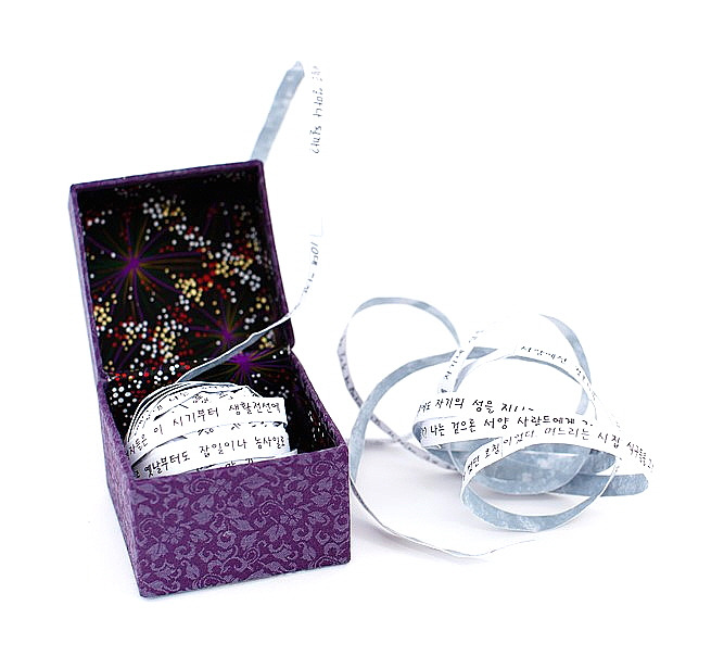 내가 책을 만드는 과정은 흩어져있는 것들을 물리적으로 엮고 묶는 과정이지만, 심리적으로는 뭉쳐있는 것들을 푸는 과정이다. 이렇게 나의 북아트작품집 <풀다>가 틈틈이 풀어낸 수줍은 글들과 함께 한 권의 책으로 태어난다.