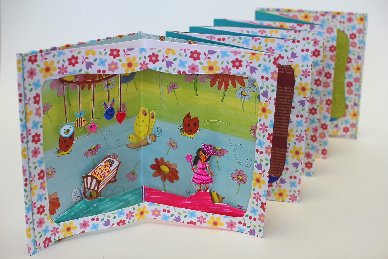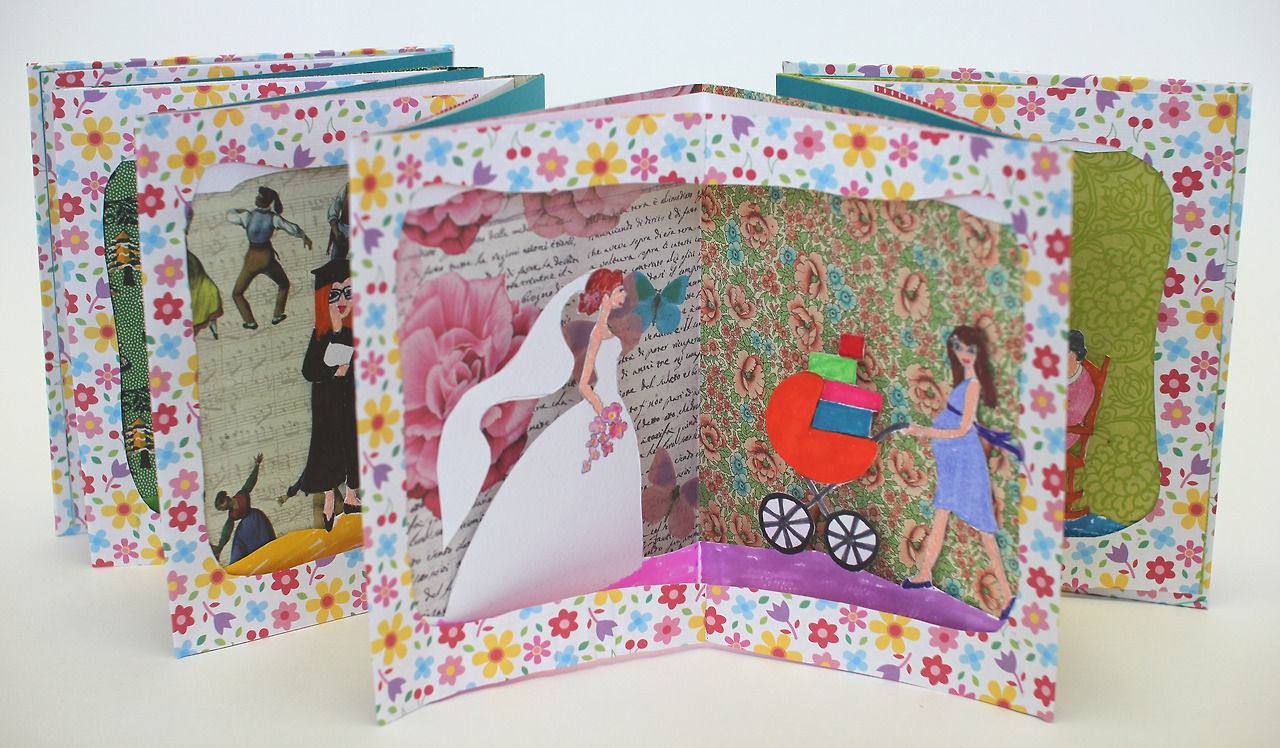 봄은 아코디언 북으로 들판에 피어나는 꽃들을 수채화로 그림.