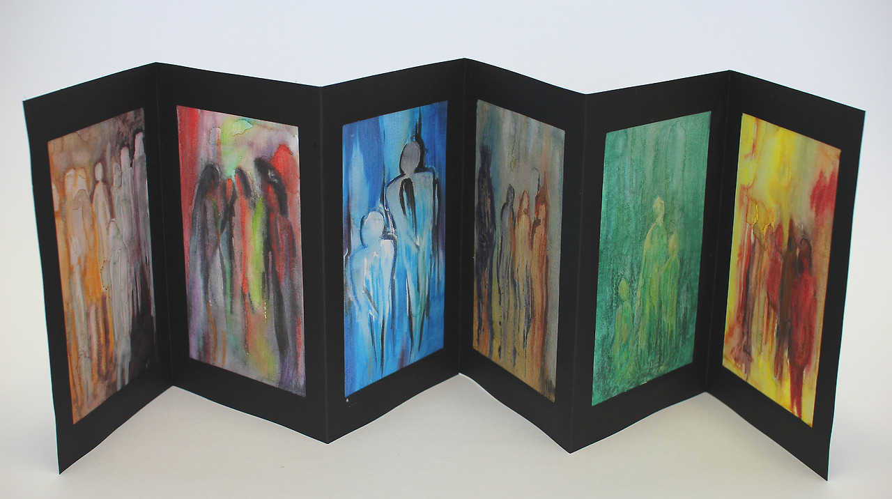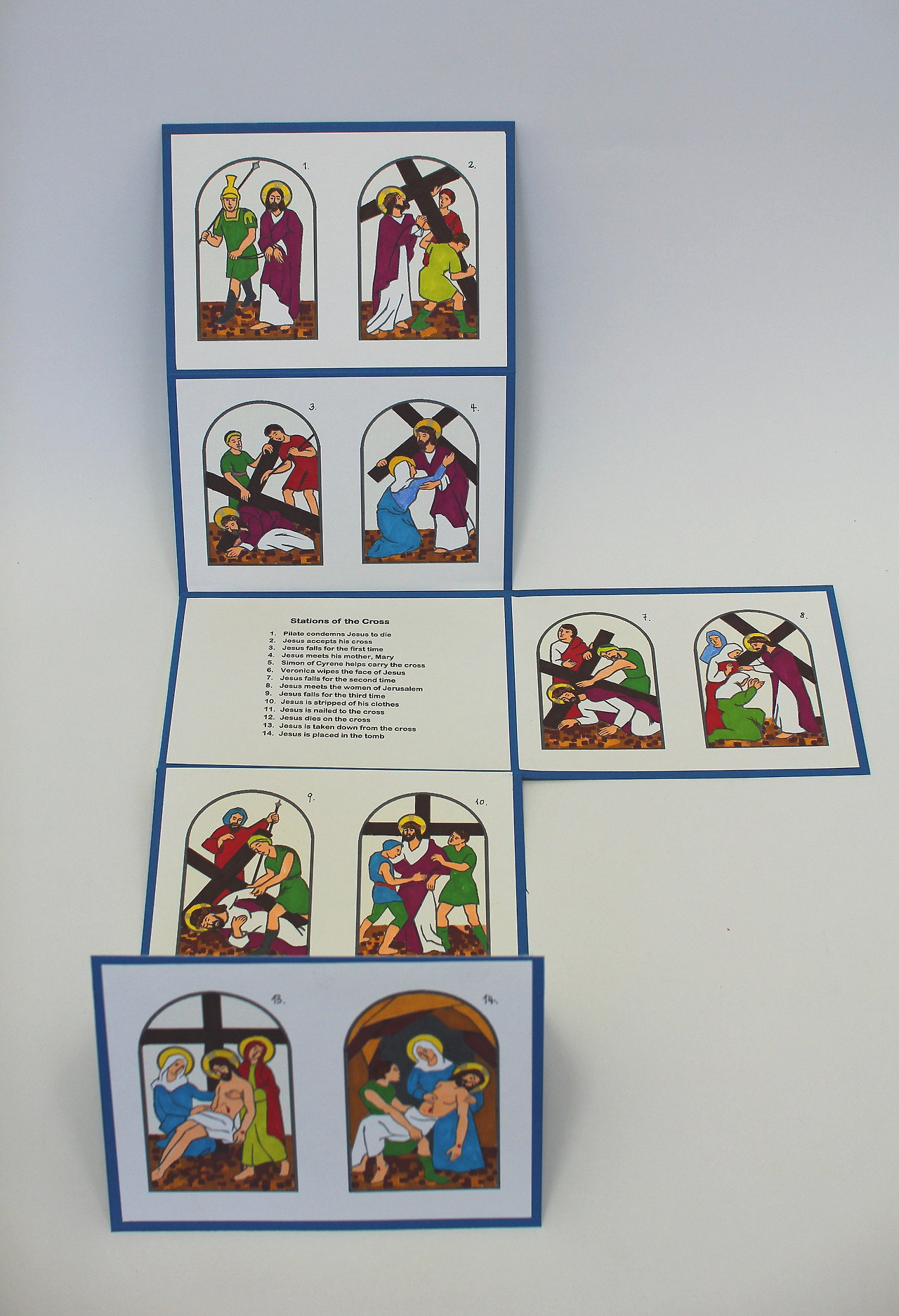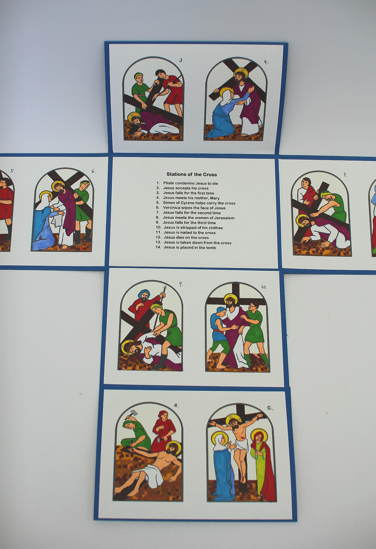 무심코 써본 유성 사인펜의 선명한 색감에 놀랐다. 십자가의 길은 어두운 터널 속으로 들어가는 길이 아니다. 궁극의 빛으로 다가가는 길이니 밝고 명료한 색깔로 표현했다. 전체를 다 펼치면 벽걸이로 걸어둘 수 있다.