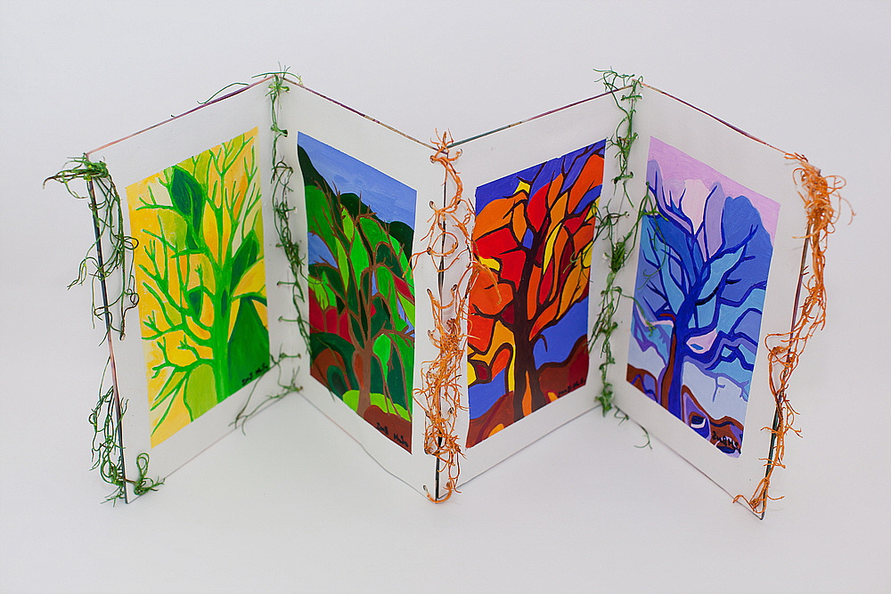 나무의 4계절 변화를 어코디언 북으로 만들었다.