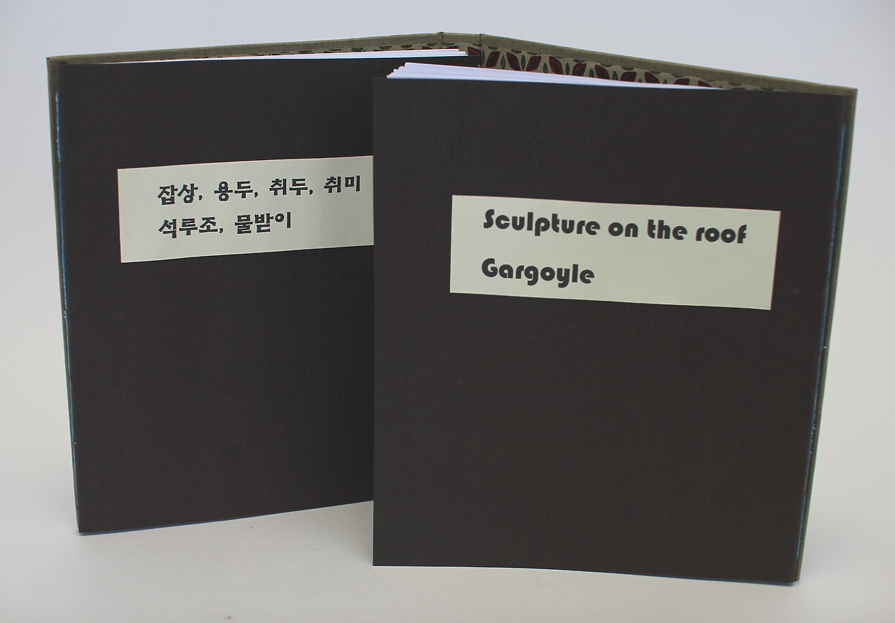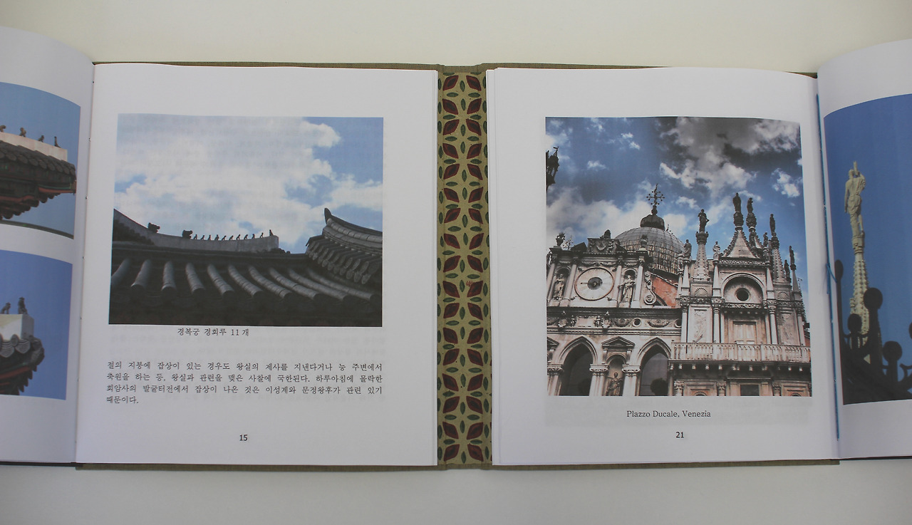 지붕 위의 그 조각품들과 우리 궁궐의 잡상들을 함께 모아 하나의 책으로 만들었다. 프렌치도어 스타일이다.