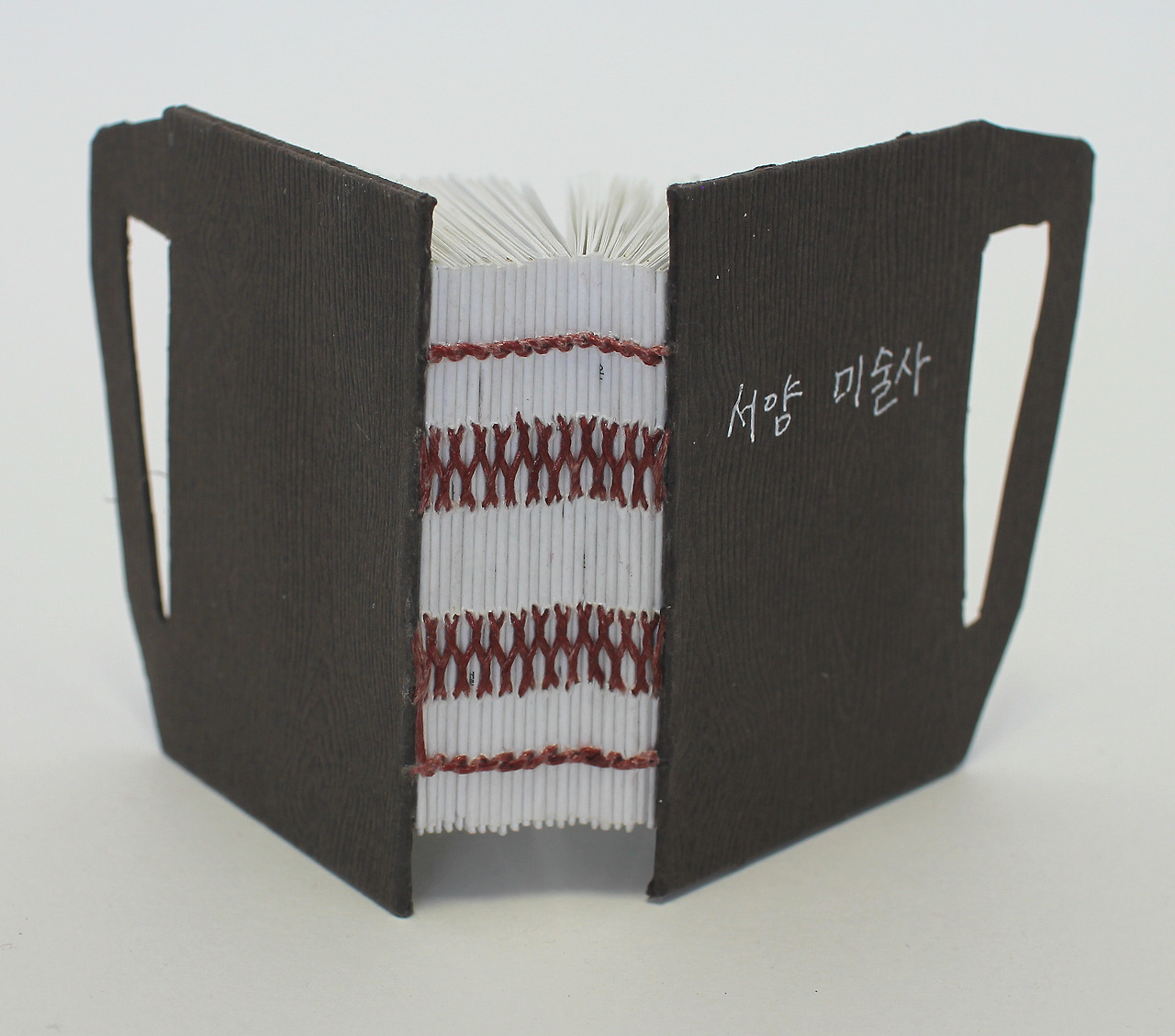 사진과 설명이 있는 내지 60쪽짜리 콥틱바인딩 책이다.