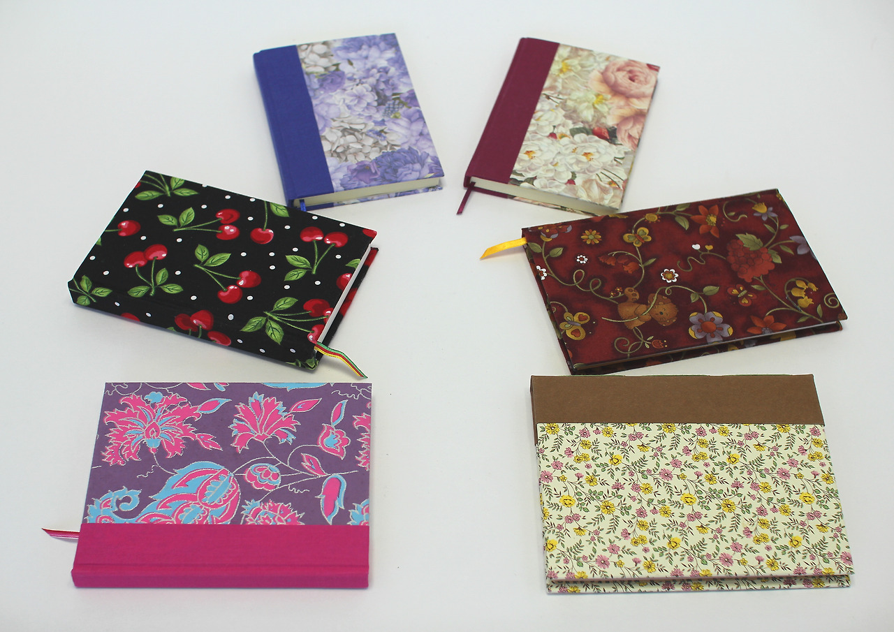 표지는 페이즐리 무늬의 짙은 고동색 인조가죽. A4크기 종이를 반으로 접은 사이즈.