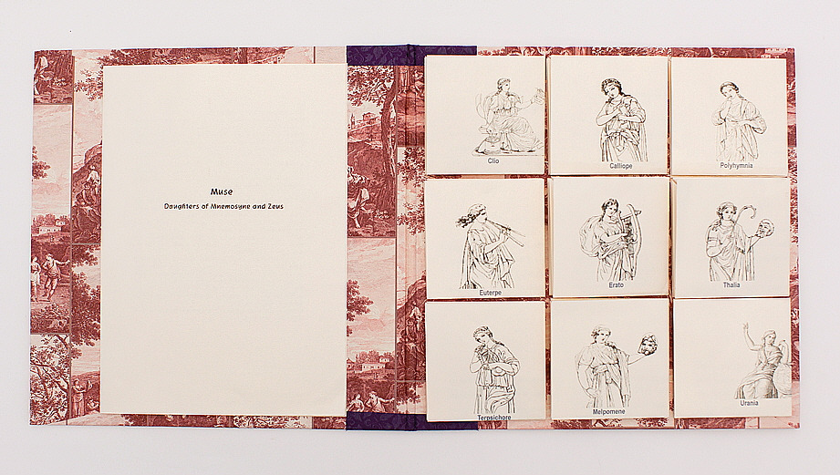 책 앞표지 뒷면엔 <뮤즈>에 대한 전반적인 설명을, 뒷표지 안쪽엔 아홉명 뮤즈를 하나 씩 따로 설명했다. 뮤즈 이미지가 그려진 사각으로 접힌 부분을 펼치면 그 내용이 나온다.