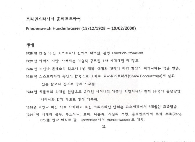 <훈데르트바써의 생애와 예술> 이런 제목을 사용할까 많이 생각했지만 책의 제목은 이름 그대로 <프리덴스라이히 훈데르트바써>로 정했다.