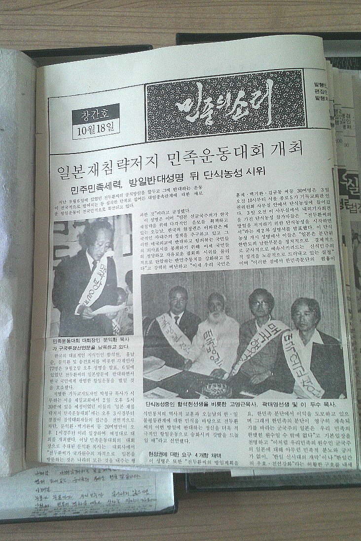 소식지 <민중의 소리>는 1984년 10월18일 타블로이드판 8면을 창간하였으나 바로 인쇄소에서 경찰에 압수당했다. 그것은 어찌어찌하여 내 손안에 들어왔고, 세월이 오래오래 흐르는 동안 나는 그것을 버리지 못했다.