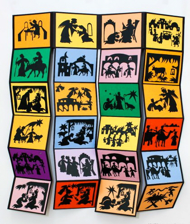 뒤의 윗부분에 벽에 걸 수 있는 장치를하여 대림절이 시작하는 날부터 벽장식을 한다.