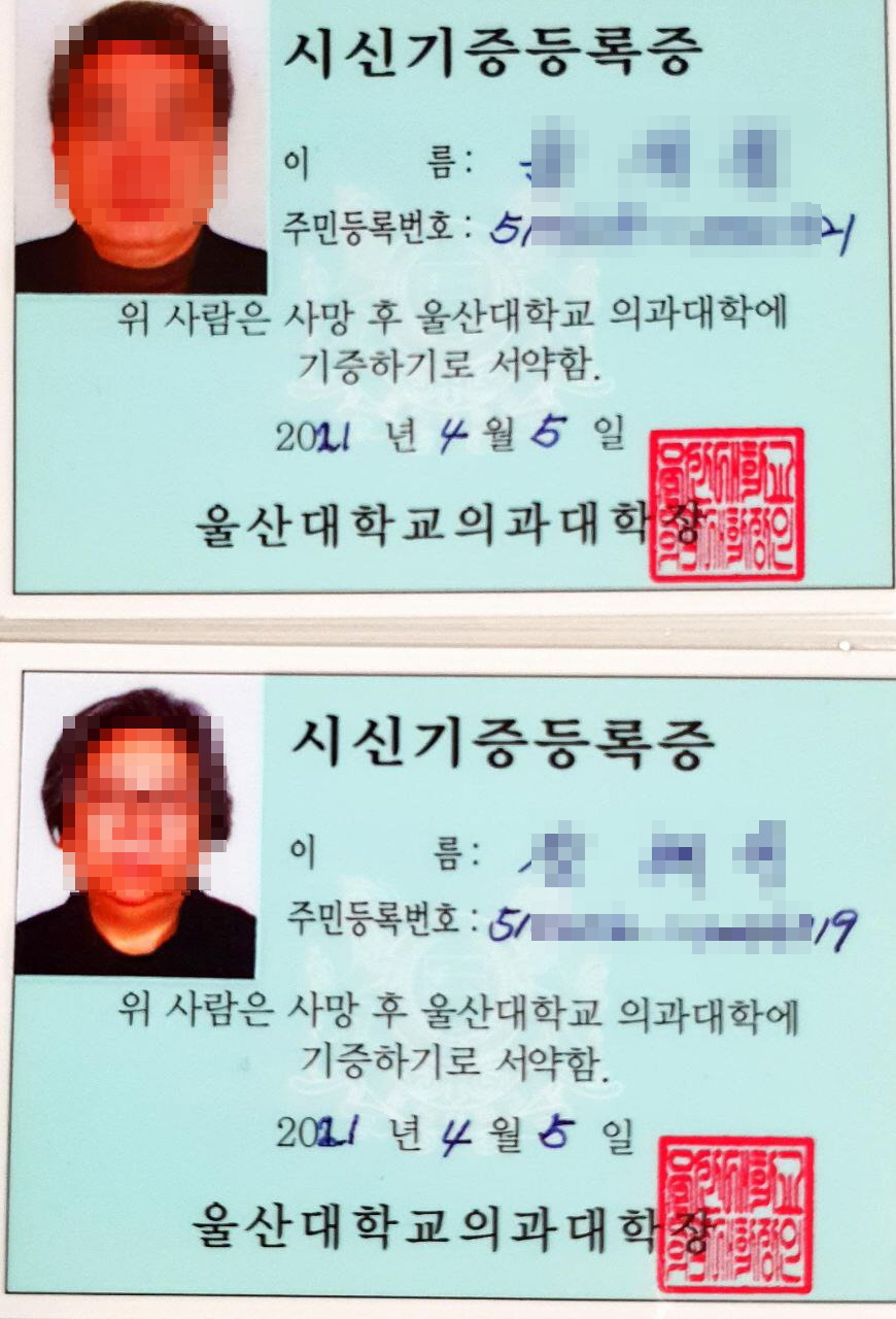 명절, 생일, 휴가, 자식들이 다함께 모이는 날은 언제나 즐거운 날들인데 하필이면 그때 시신기증서에 서명하라고 하기는 좀 불편해서 미뤄왔었다. 그러다가 지난 설무렵에 자식 셋 중에 두 명의 서명을 받아뒀고, 며칠 전에 제출을 했다.