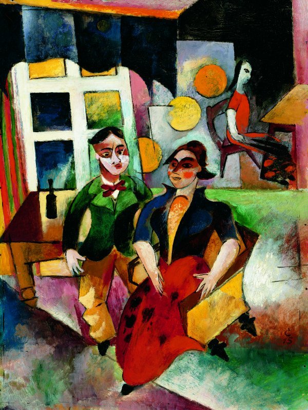 첫눈에 그림 색깔이 환하고 선도 확실해서 어려운 그림은 아닌 것 같죠? 알록달록 색감이 예쁘네요. 독일의 표현주의 화가 하인리히 캄펜동크의 <젊은 커플>입니다. 한 쌍의 남녀가 의자에 앉아있는데요, 화가와 그의 아내 에이다입니다. 1915년에 그린 작품입니다. 그해 2월에 아들이 태어났는데 작가는 마냥 행복을 누릴 수만은 없었어요. 바로 몇 달 전에 함께 예술활동을 하던 마케(August Macke)가 전사했거든요. 캄펜동크는 마케와 함께 피카소의 분석적 입체파를 연구하고 있었는데 친구가 전사했으니 상심이 크죠.