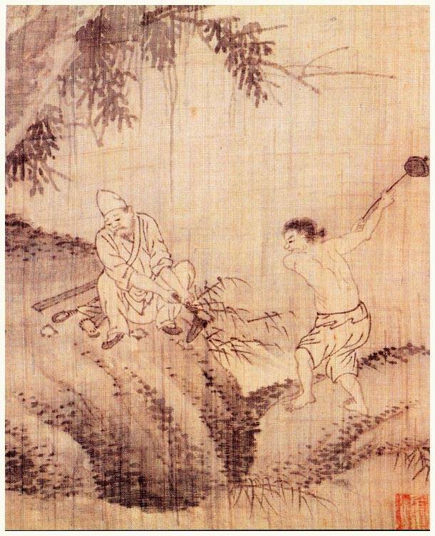 강희언 <석공공석도> 비단에 수묵. 22.8x15.5cm. ⓒ국립중앙박물관