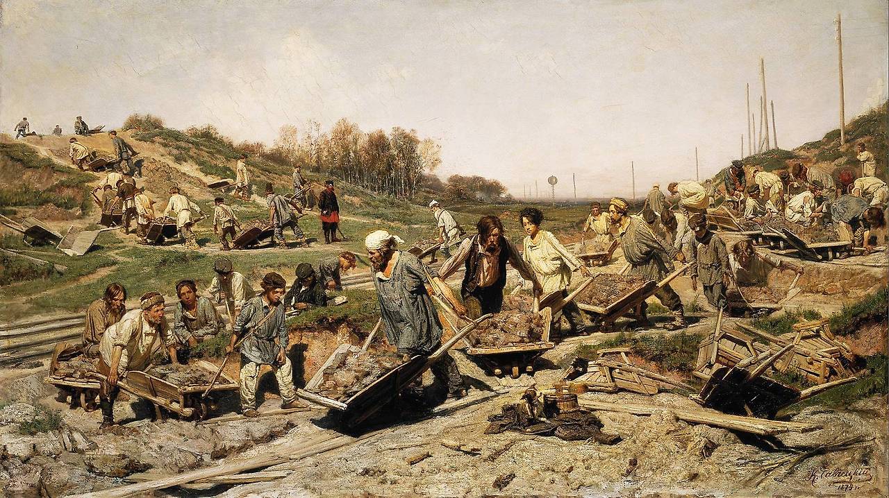 콘스탄틴 사비츠키Konstantin Savitsky <철도수리Repair work on the railway> 1874. 캔버스에 유채. 100 X 175cm. 트레티야코프 미술관, 모스크바, 러시아.