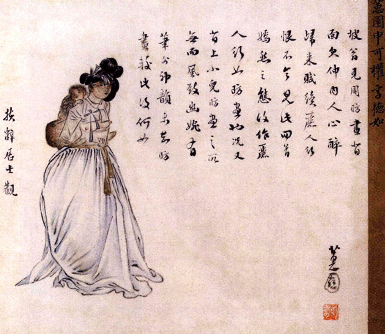 況又背上小兒, 昉 畫之所無. 而風致幽婉, 有筆外神韻.