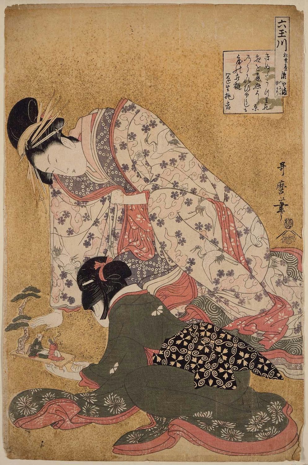 오른쪽; 기타가와 우타마로(喜多川歌麿) <마츠바야의 세야마, 카무로 이로카, 유카리 Seyama of the Matsubaya, kamuro Iroka and Yukari> 1793. 목판화. 38.7x25.3cm. 보스톤 미술관, 미국.