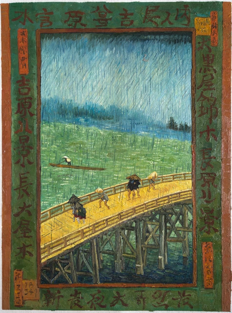 왼쪽; 반 고흐 Vincent van Gogh <빗속의 다리, 히로시게 이후 Bridge in the Rain,After Hiroshige>, 1889. 캔버스에 유채 73.3x53.8 cm. 반 고흐 뮤제움, 암스테르담, 네덜란드.