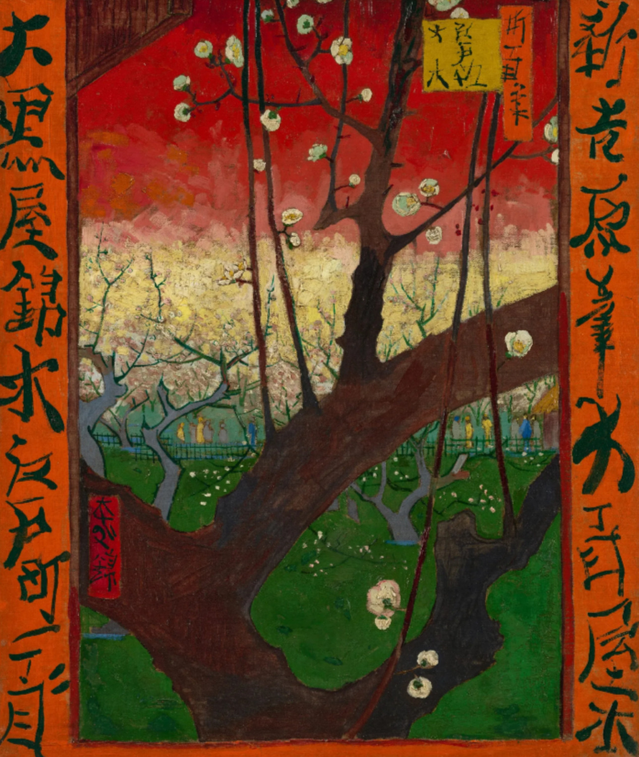 고흐의 그림을 보자마자 저절로 웃음이 나왔다. 고흐가 사방에 저 한자를 그리느라고 얼마나 애썼을까. 뜻도 모르고 그렸을 글자를 나보다 더 잘 썼다(그렸다). 원본에 없는 다른 인쇄물에서 본 문자를 그린 것이다.