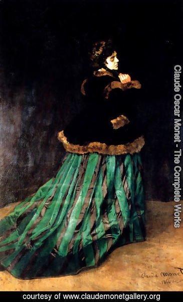 화가의 아내 카미유 모네의 전신 초상화이다. 1876년 파리에서 열린 제2회 인상파 전시회에 출품하여 많은 주목을 받았다. 빨간색 기모노(우치카케 uchikake), 일본식 다다미 매트, 벽을 장식한 부채들, 이 작품은 첫 눈에 자포니즘 스타일임을 알 수 있다.