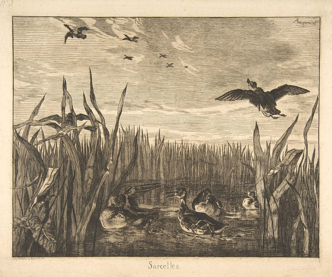 오른쪽; 펠릭스 브라크몽Félix Bracquemond <오리들Sarcelles> 1853 동판화. 메트로폴리탄 미술관.