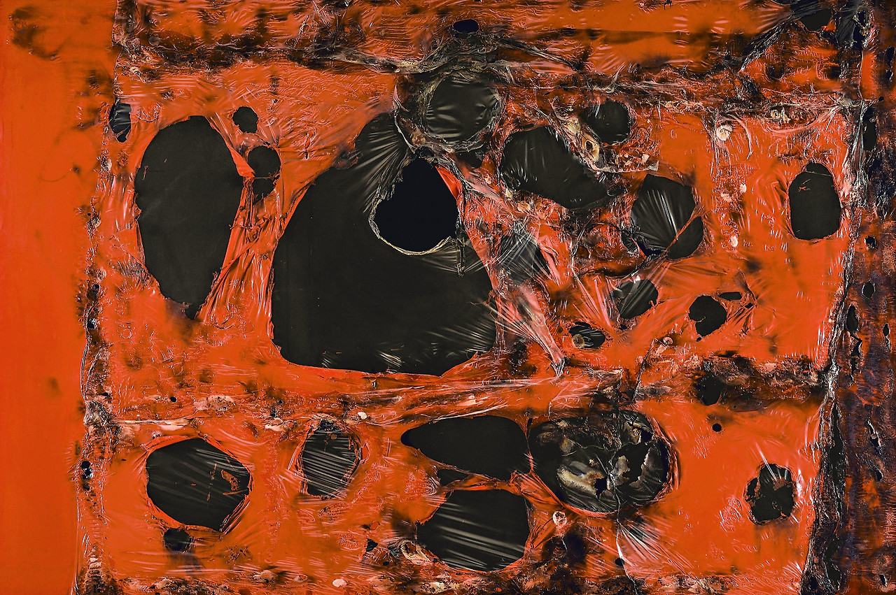 알베르트 부리 <플라스틱 연소> 혼합재료, 페인팅. 1955. 구겐하임 뮤제움, 뉴욕, 미국